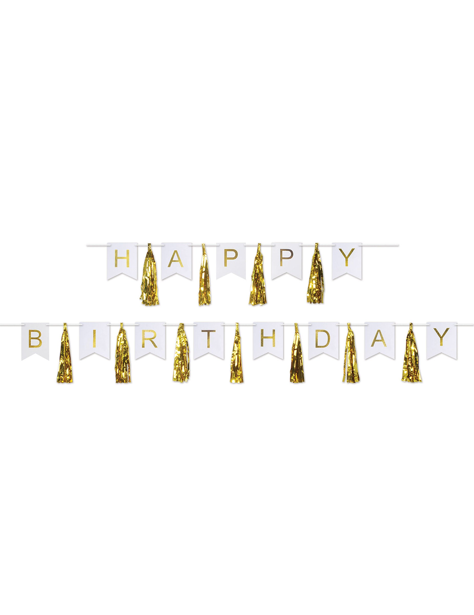 Ghirlandă cu ciucuri aurii și albe pentru ziua de naștere, 4,56 m, din carton