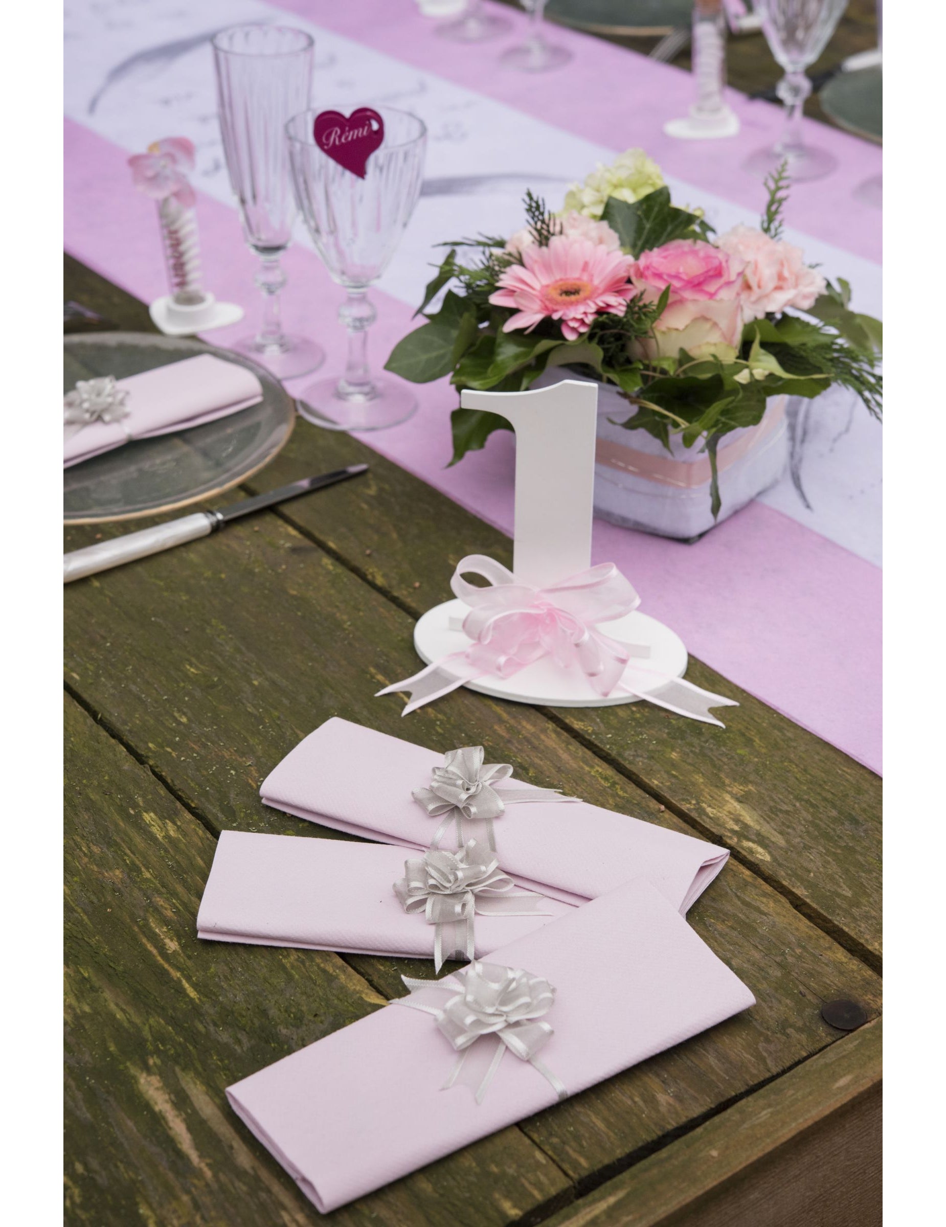 Ce lot comprend 5 minis nœuds rose clair. Conçus en organdi satiné, ces minis nœuds possèdent un ruban de 16 mm de large. Le mécanisme est simple : tirez sur les deux fils pour que chaque nœud prenne sa forme. Ces liens permettent également de les attacher facilement. Que ce soit pour décorer vos verres, vos contenants à dragées ou créer des ronds de serviette, ces petits nœuds élégants sublimeront votre événement. Ils sont parfaits pour un mariage ou un baptême réussi.