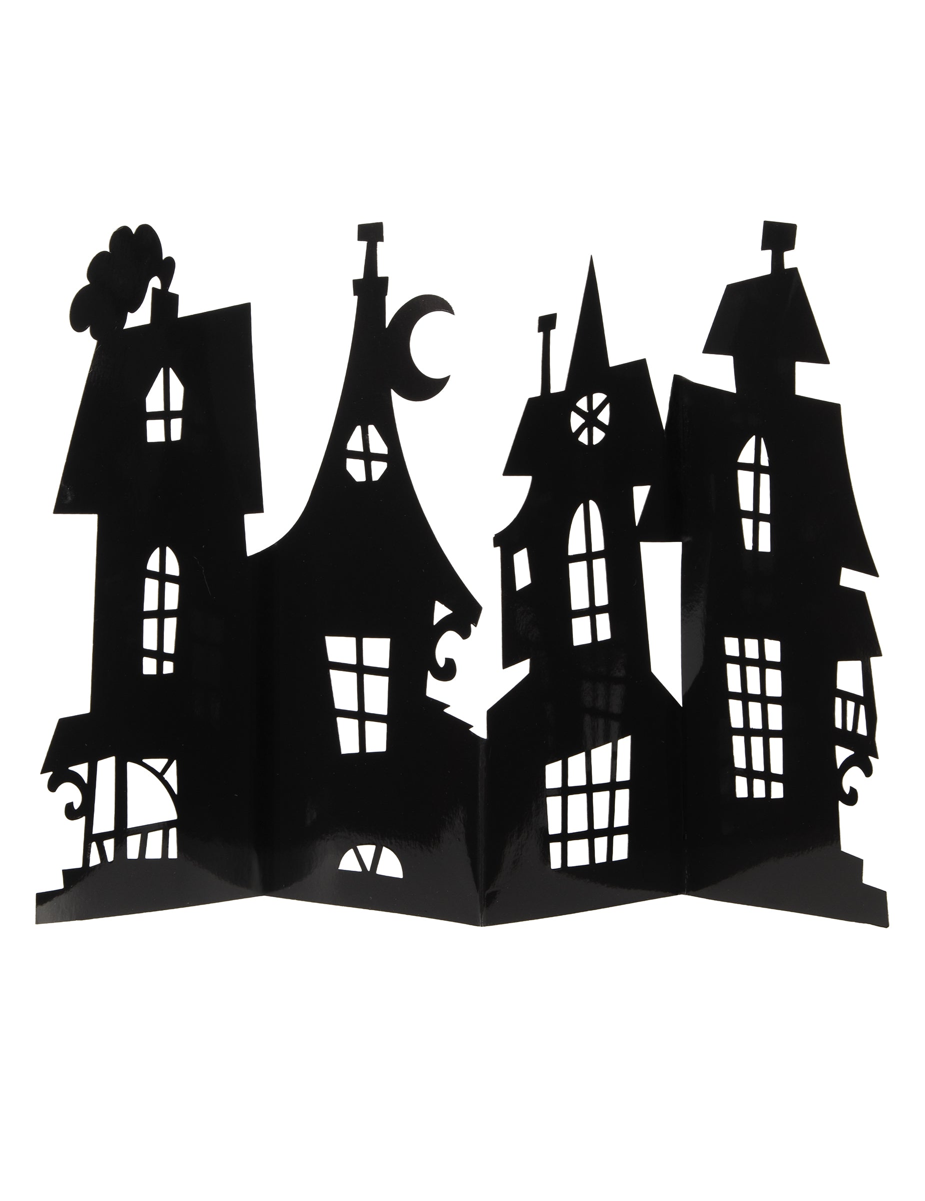 Adaugă o notă sinistră decorului tău cu aceasta piesă centrală de Halloween Fabricat din carton rezistent, cu dimensiunile de 60 x 38 cm. Această piesă decorativă neagră ilustrează o conac bântuit De rău augur sub cerul nopții. Cu ferestrele sale impunătoare și coșul de fum din care iese fum, acest decor creează o atmosferă terifiantă. piesă centrală este ideal pentru a insufla mister și groază în timpul Petrecere de Halloween.