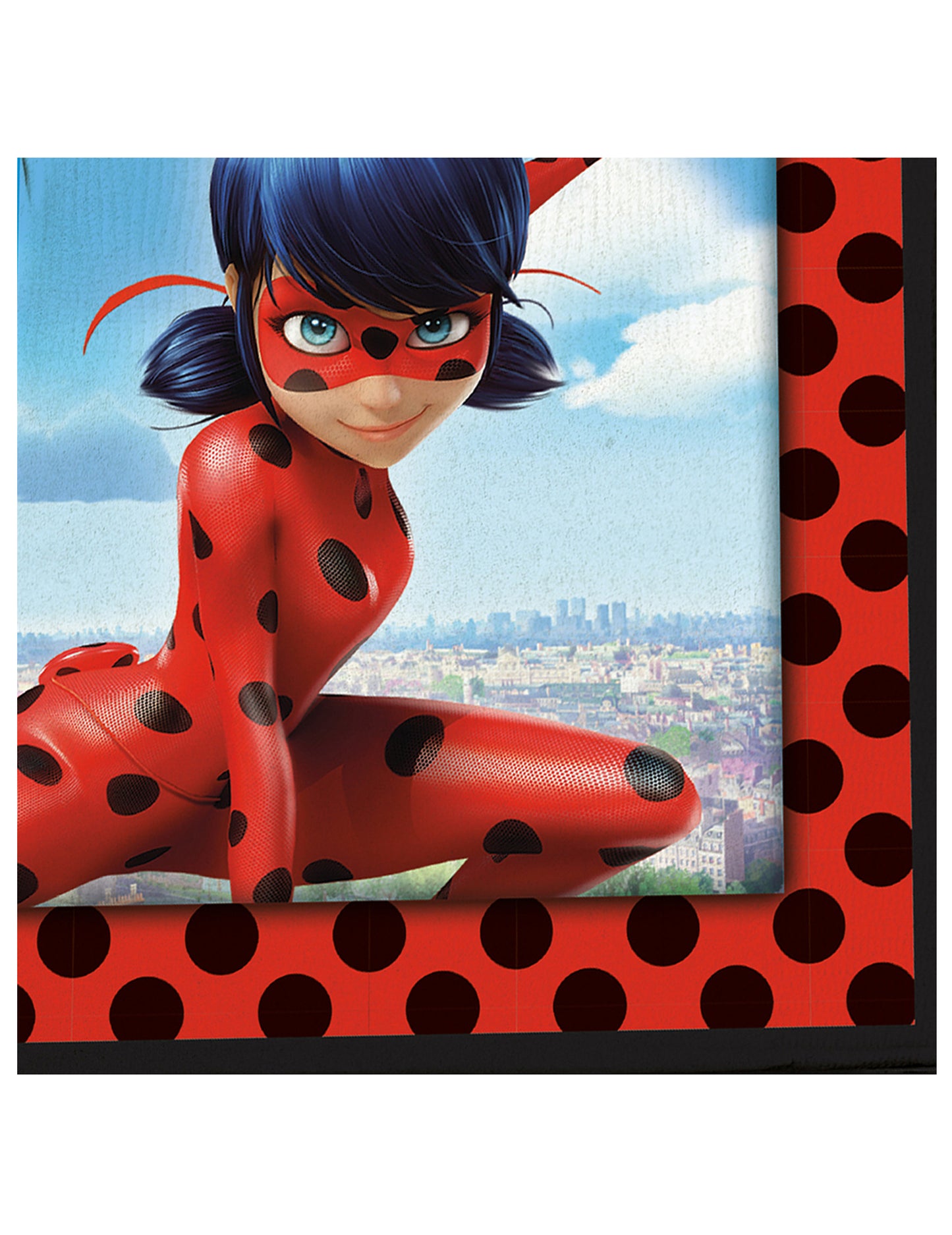 Acest lot conține 20 de prosoape de hârtie sub licență miraculoasă oficială. Ele măsoară aproximativ 16,5 x 16,5 cm pliat și 33 x 33 cm odată desfășurat. Marginile sunt roșii cu polka negru pentru a aminti de ladybug, simbolul animalului lui Ladybug. În centru, veți admira faimoasa supereroină, Black Cat Friend. Completați -vă masa de naștere cu aceste prosoape de unică folosință pentru ziua de naștere miraculoasă a copilului dvs.!