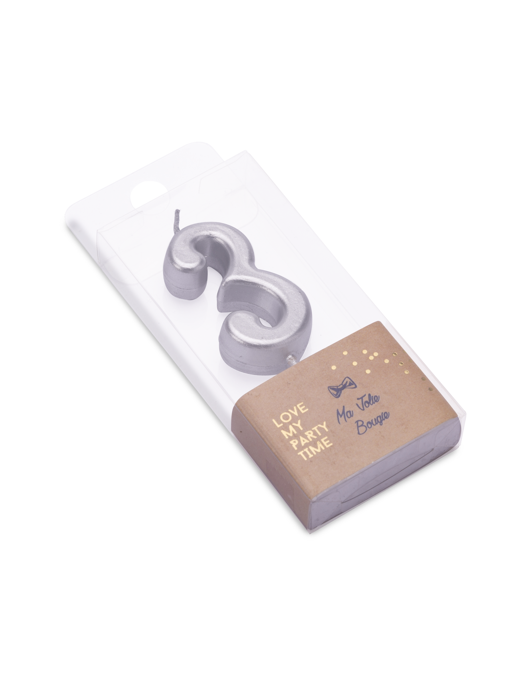 Sărbătorește un eveniment special cu asta lumânarea numărul 3 Fabricat din ceară de calitate. Înălțime de 4,3 metri. cm, Se mândrește cu un finisaj argintiu superb. Datorită suportului integrat, îl puteți instala cu ușurință pe tort de sărbătoare. Aceasta decorarea desertului adaugă o notă esențială de eleganță unei ziua de naștere de succes.