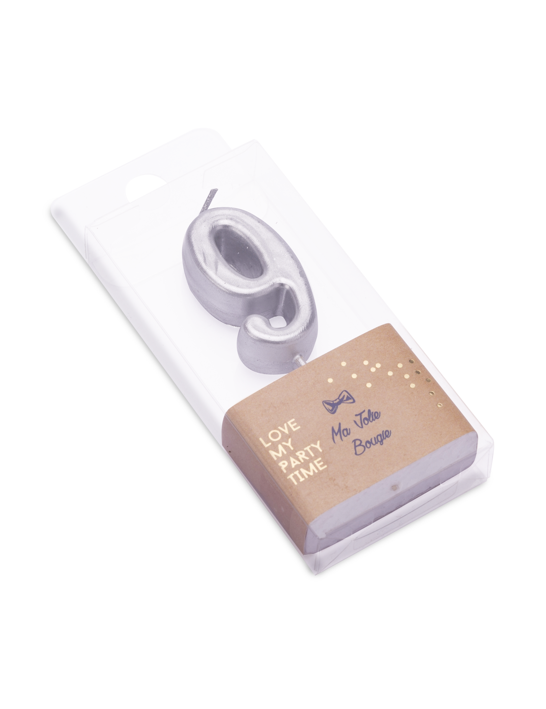 Lumânare de ziua de naștere cu numărul 9, metalică argintie, 4.3 cm cu vârf
