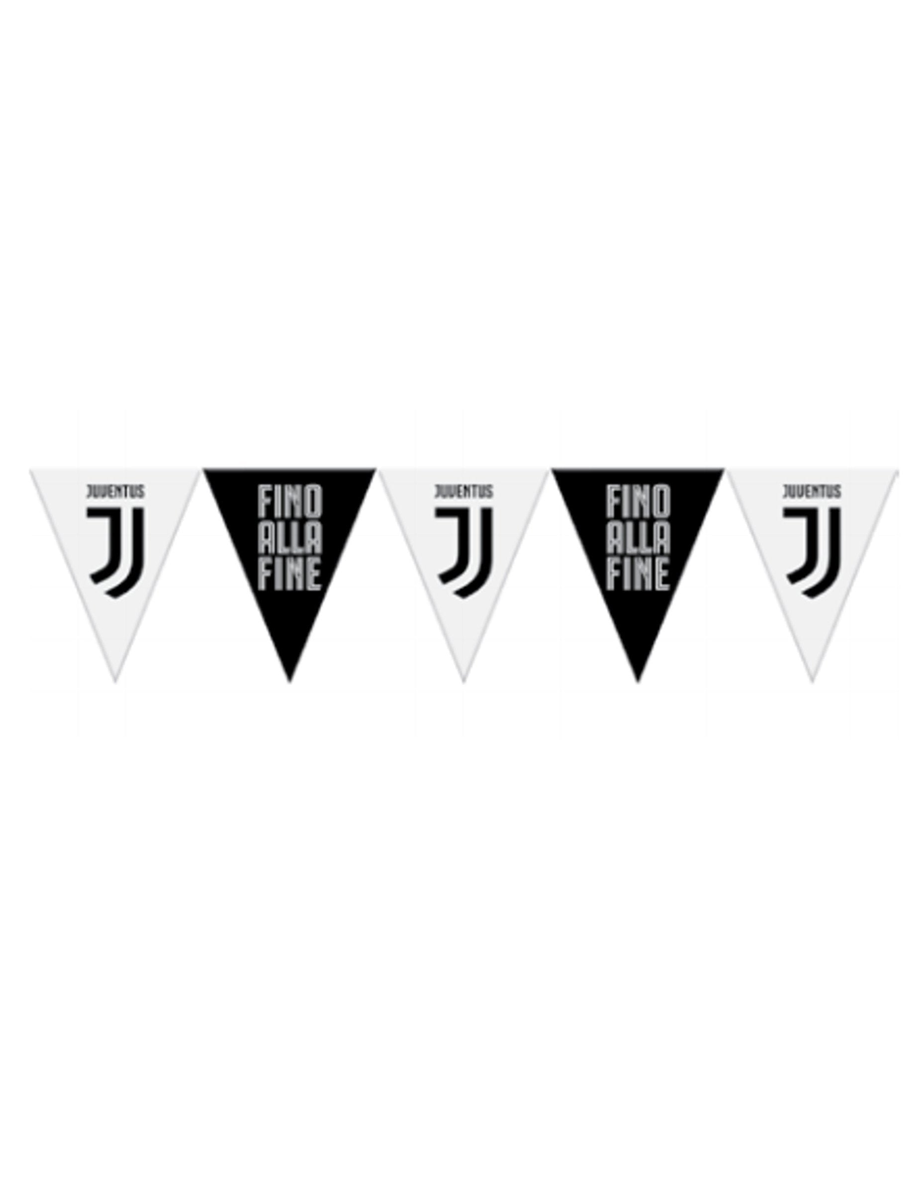 Acest Fanion Garland este sub licență oficială Juventus. Este din plastic și are o culoare alb -negru, culorile echipei de fotbal: Juventus. Pennanții alb -negru alternează. Sunt împodobite cu logo -ul Juventus, precum și sloganul „Fino Alla Fine”, pronunțat de toți susținătorii fervent ai echipei. Această ghirlandă va fi esențială pentru a -ți finaliza decorarea camerei de ziua de naștere a fanului tău de fotbal pentru copii sau de o seară de meci!