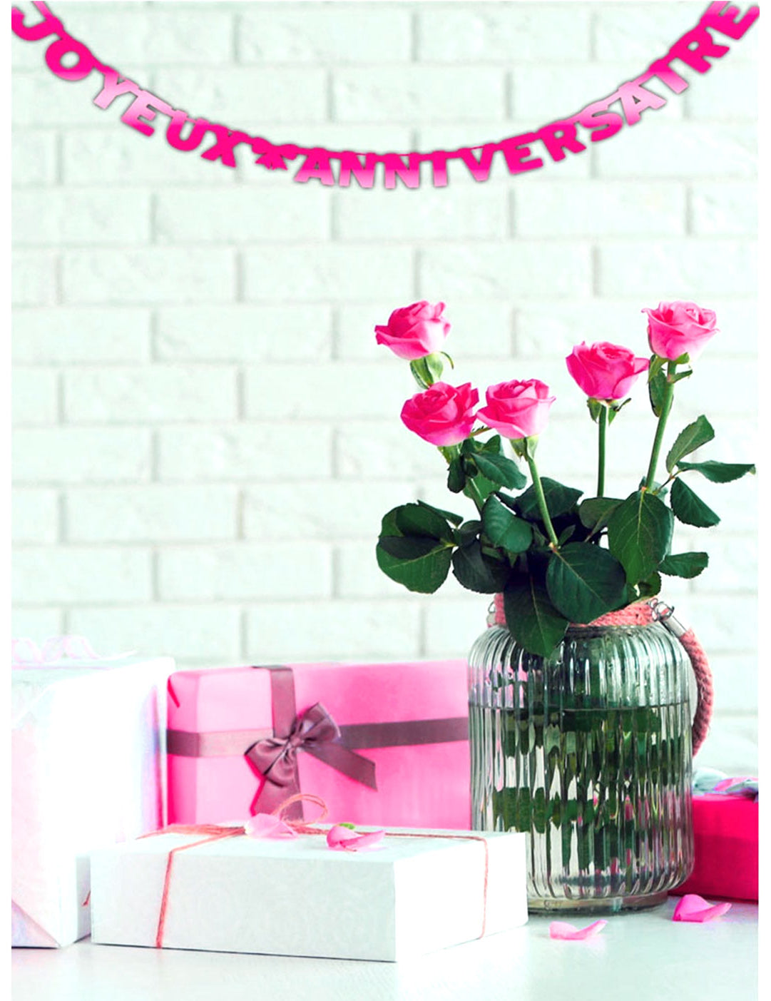 Această ghirlandă de carton Fushia măsoară aproximativ 280 cm lungime. Această ghirlandă reprezintă cuvintele de naștere la mulți ani în scrisori fushia de 15,5 cm înălțime și 11,5 cm lățime. Va fi ideal pentru a îmbrăca o cameră sau o grădină cu ocazia unei zile de naștere!