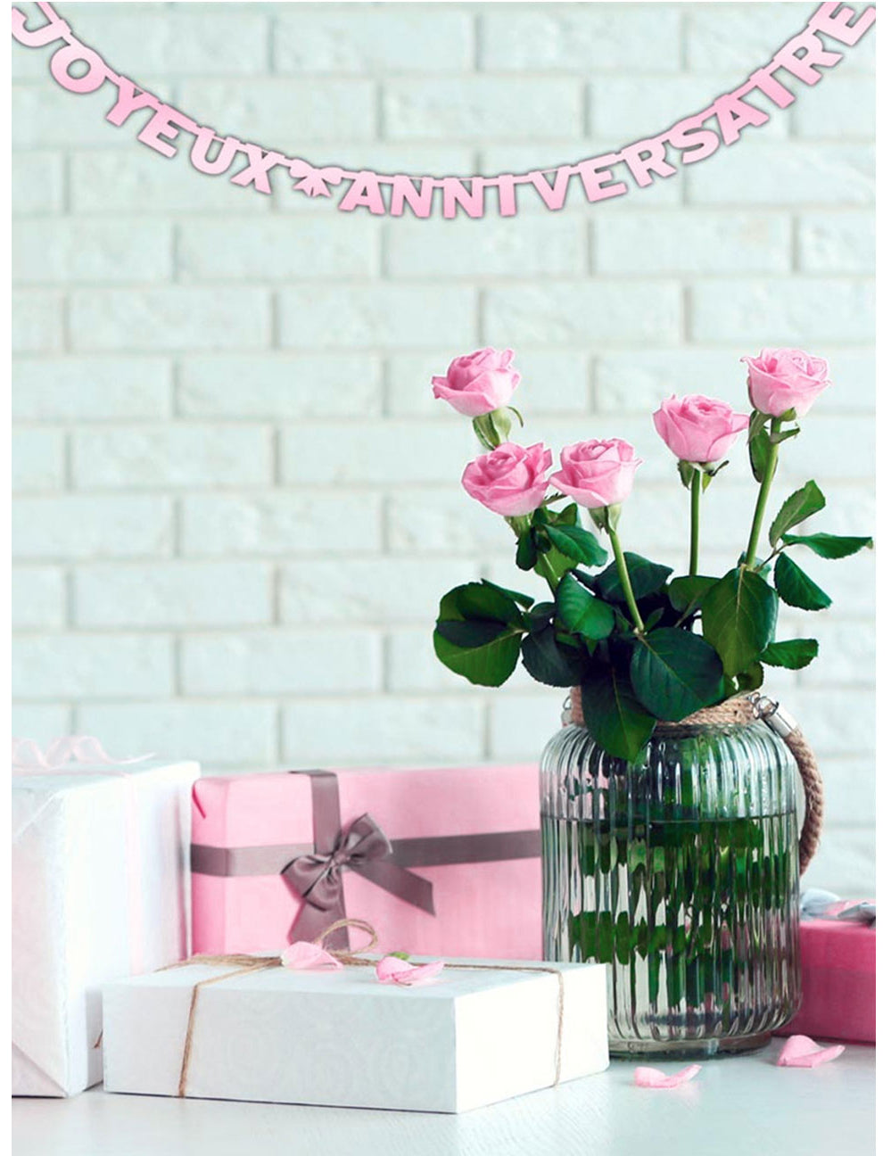 Această ghirlandă de naștere din carton măsoară aproximativ 280 cm lungime. Este alcătuit din scrisori roz formând „La mulți ani”. Îl puteți agăța cu ușurință datorită scopurilor sale. Această ghirlandă va fi ideală pentru decorarea unei camere sau a unei grădini în timpul unei zile de naștere în tonuri roz!