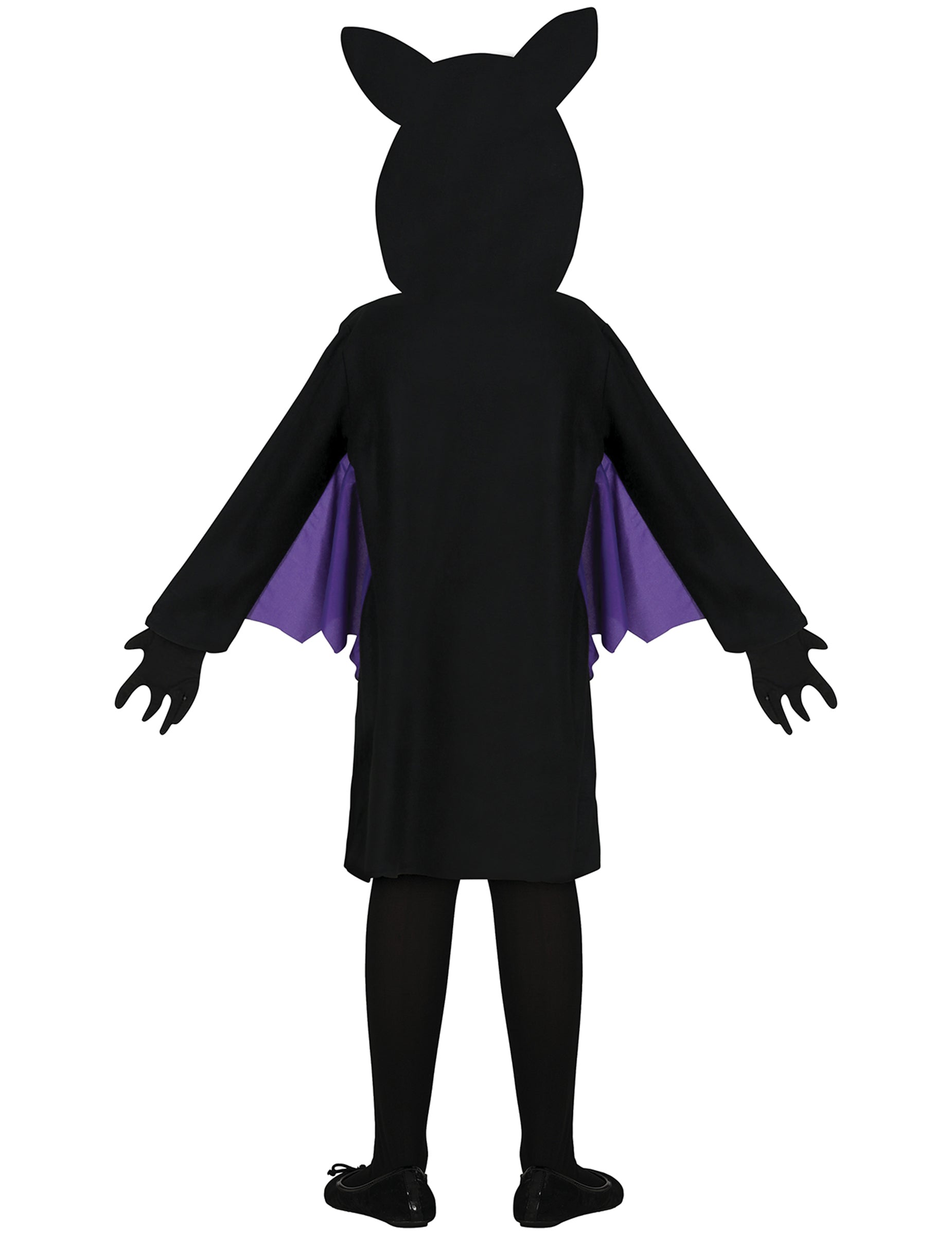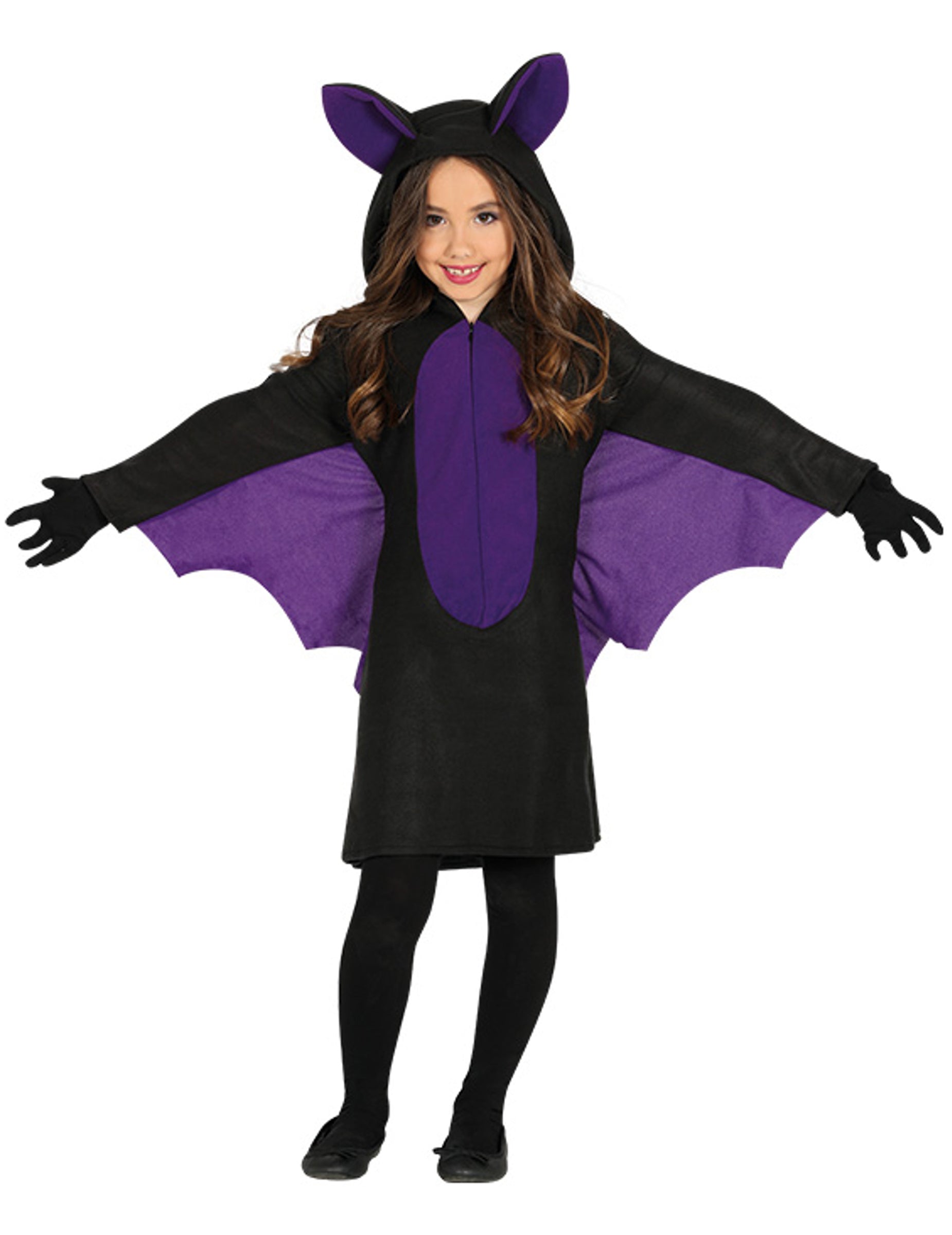 Acest costum de liliac pentru fete este format dintr -o rochie (mănuși, colanți și încălțăminte nu sunt incluse). Rochia lungă -plină de viață este neagră cu burta și aripile violet. De asemenea, are o capotă în care găsim urechile violet ale liliacului. Acest costum va fi ideal pentru turismul caselor în seara de Halloween.