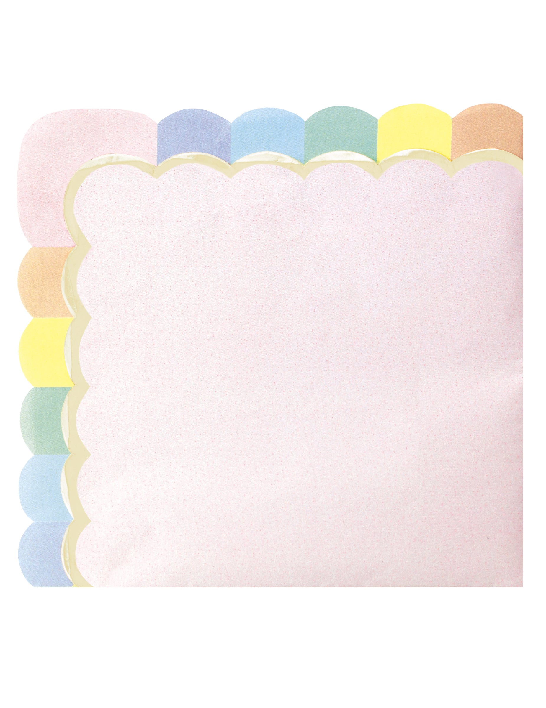 Acest lot este format din 16 prosoape de hârtie care măsoară aproximativ 33 x 33 cm odată desfășurat. Prosoapele sunt de culoare roz pastelată cu marginile curcubeului. Aceste prosoape colorate vor fi perfecte pentru masa ta de naștere.