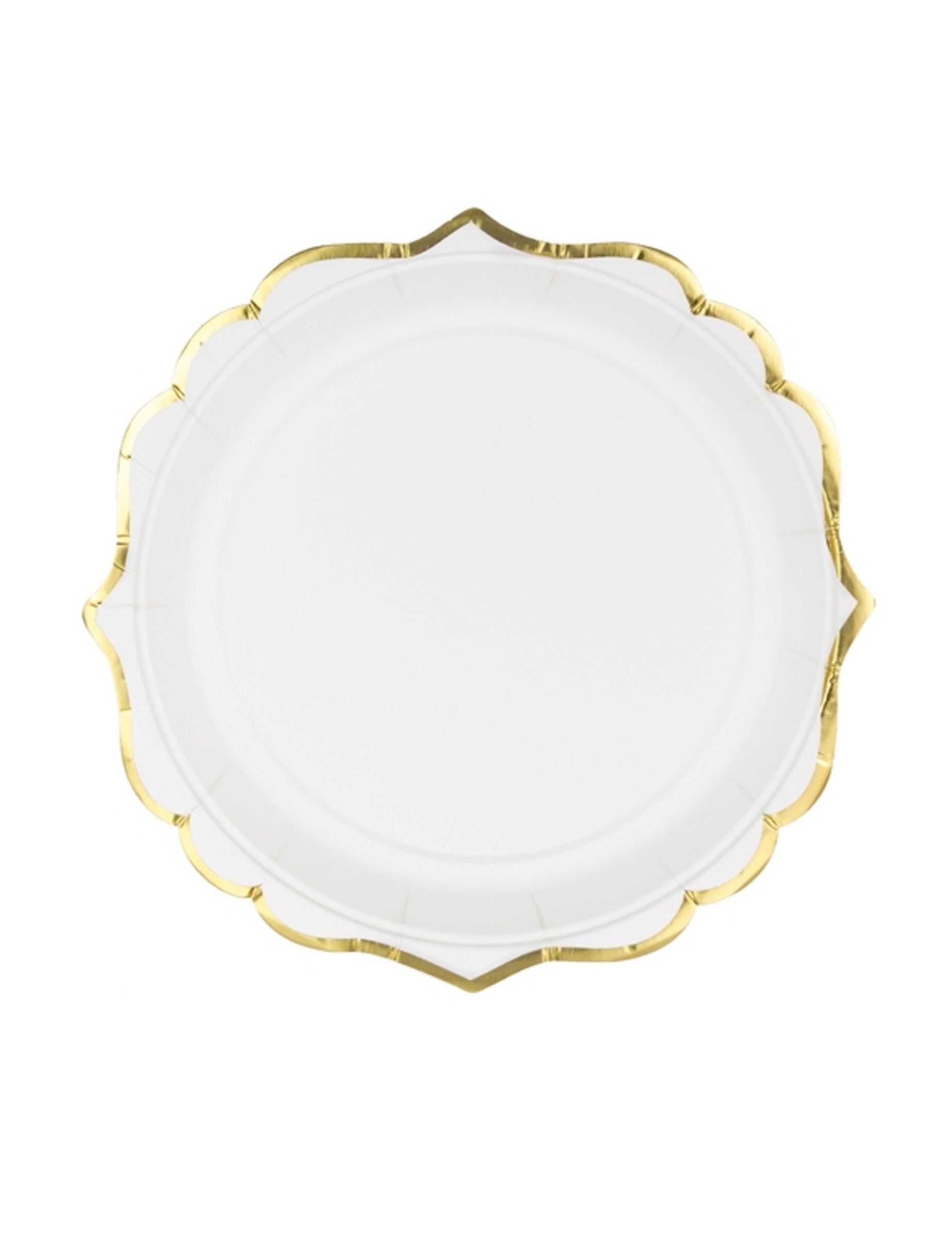 6 petites assiettes en carton blanches et bordures dorées ciselées 18 cm