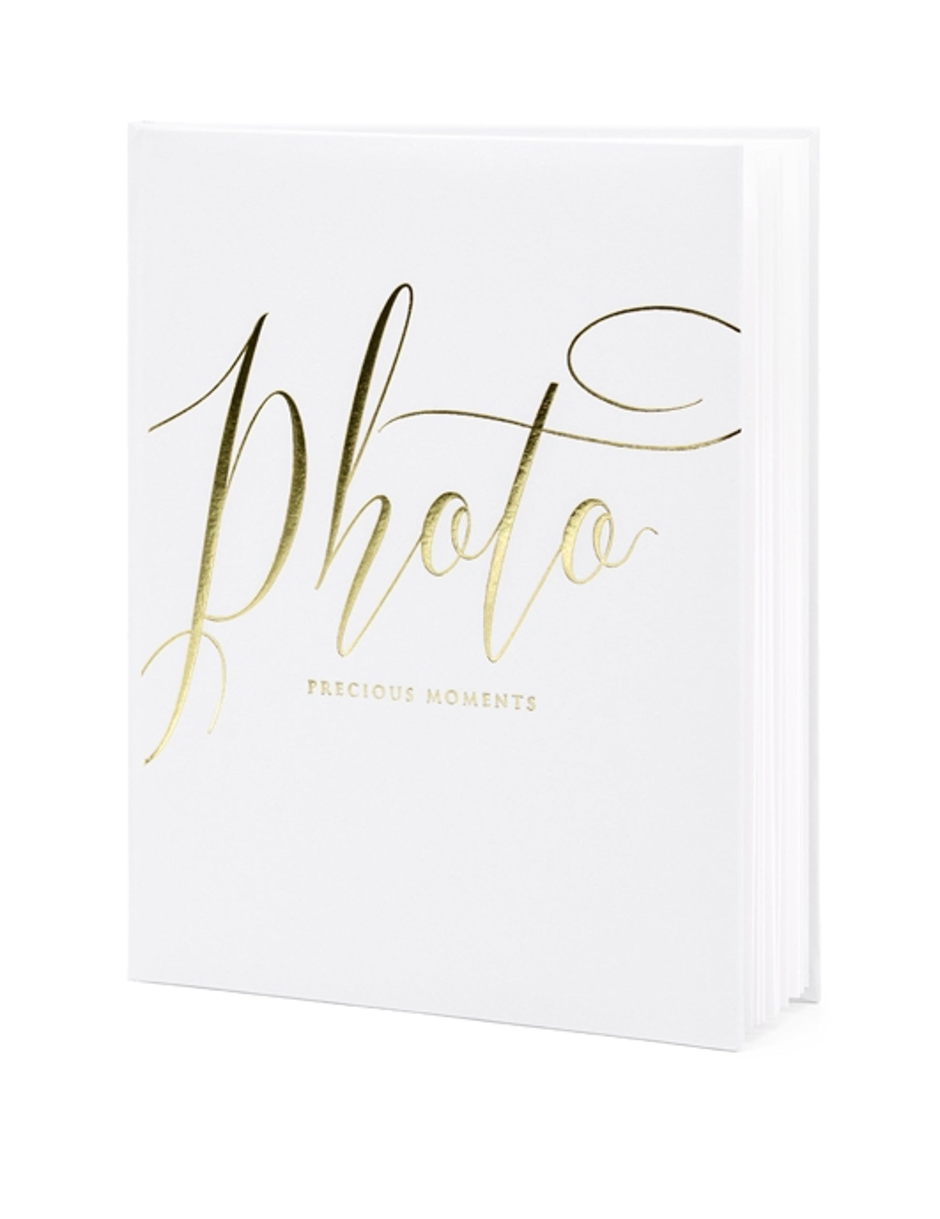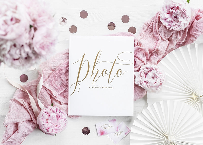 Păstrați-vă amintirile prețioase cu acest album foto de 20 x 24,5 cm. Având o copertă elegantă albă, acesta poartă inscripția aurie „Photo precious moments” pentru o notă rafinată. Acest album oferă 22 de pagini dedicate găzduirii celor mai frumoase fotografii ale dumneavoastră. Este accesoriul ideal pentru a imortaliza fiecare clipă a nunții dumneavoastră în fotografie.
