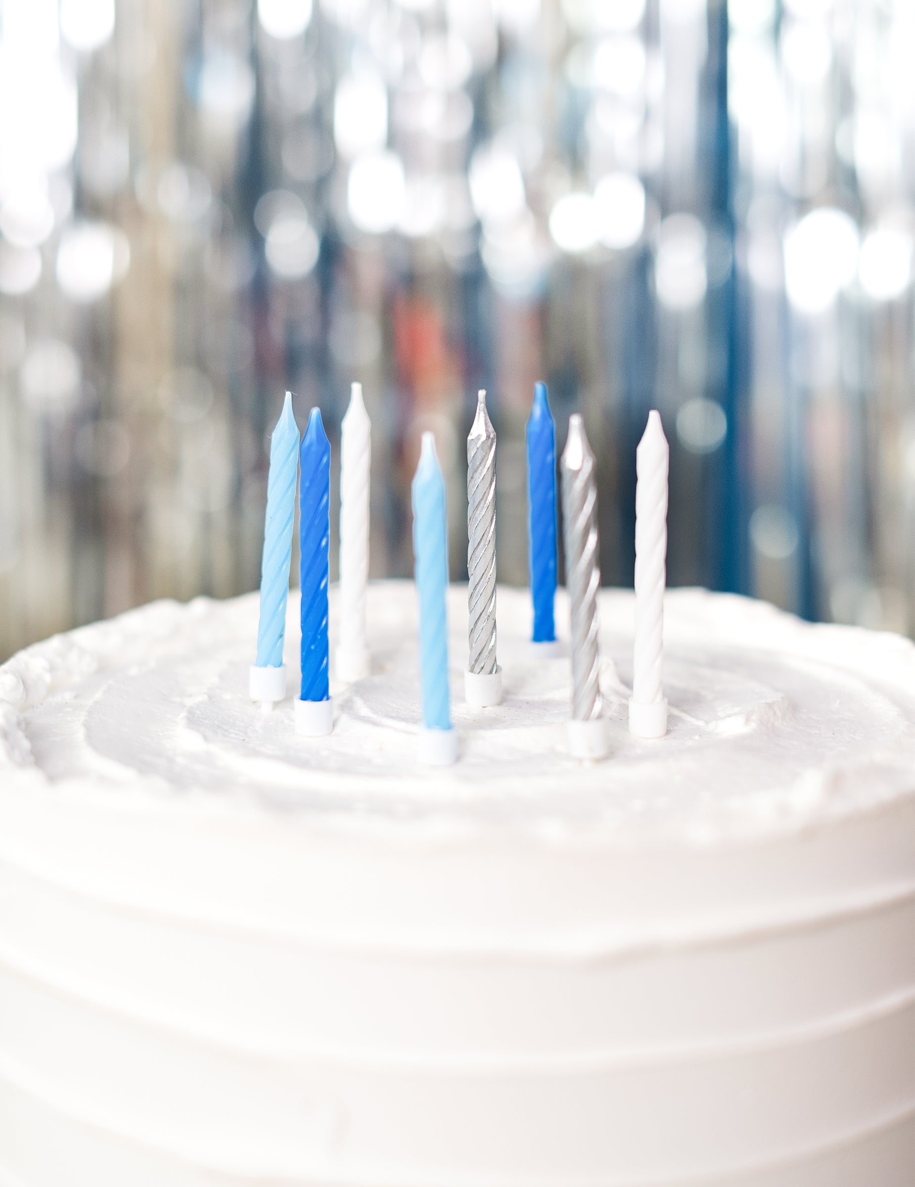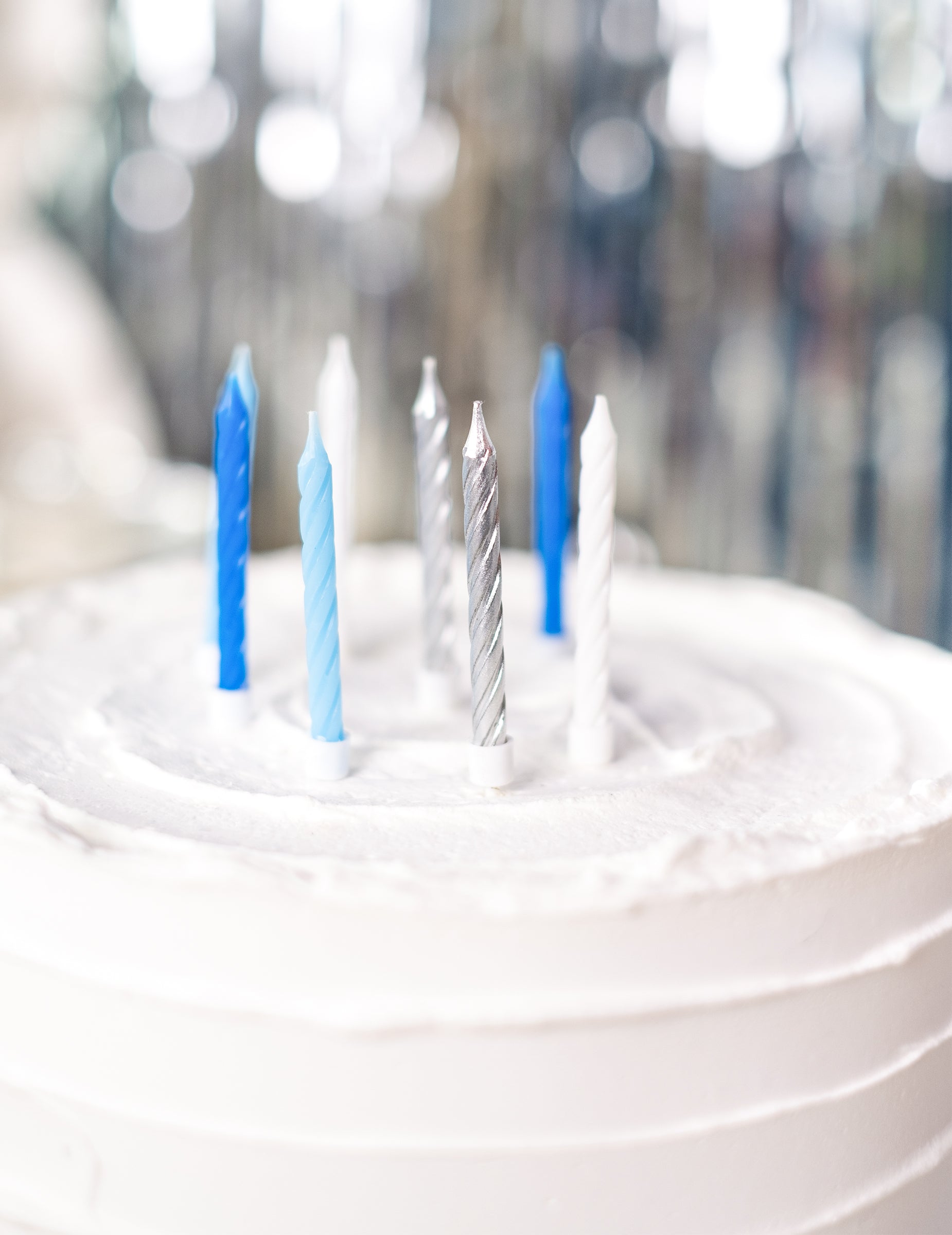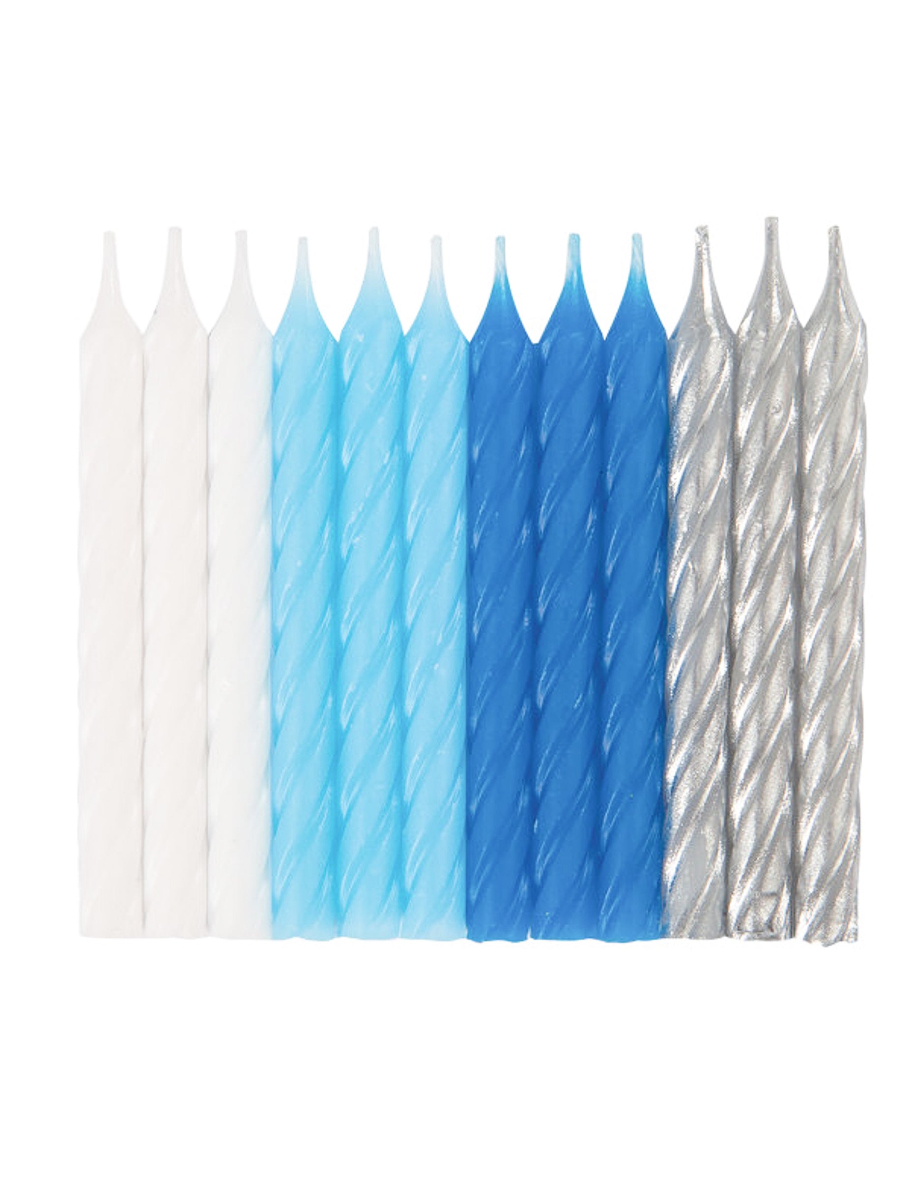 24 lumânări de naștere albastru, alb și argint 7 cm
