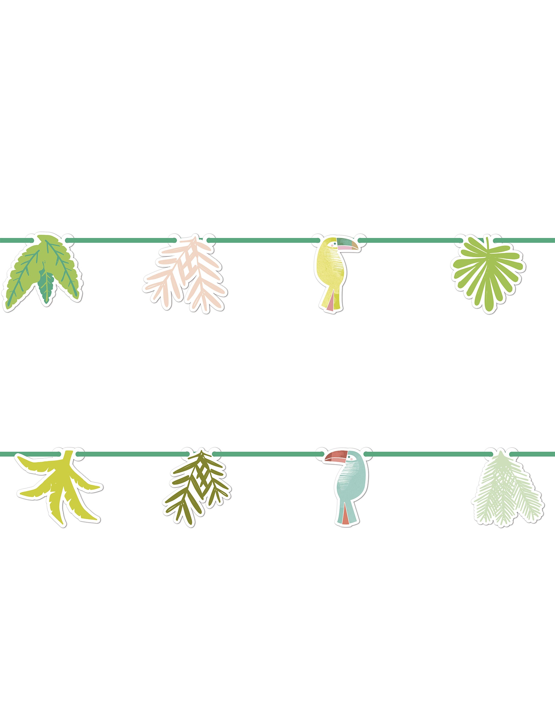 Decorează-ți spațiul de petrecere cu asta ghirlandă un afișaj tematic care se întinde pe 2 metri. Fabricat din carton rezistent, este alcătuit din tucani multicolor 16 cm şi frunze tropicale variat. Acest element decorativ este ideal pentru crearea unei atmosfere de junglă tropicală în timpul unei ziua de naștere festiv.