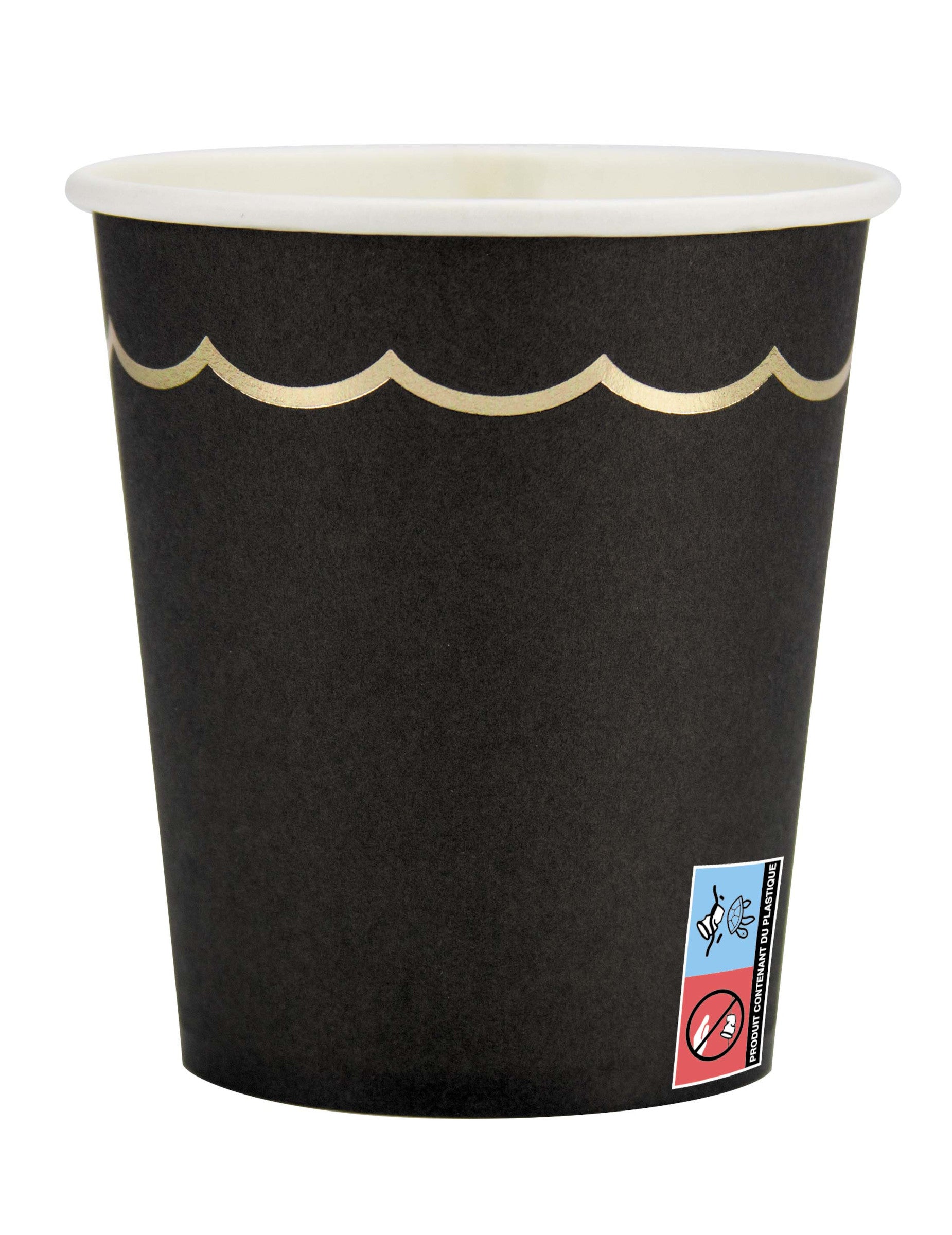 Apportez une touche de raffinement à votre table avec ce lot de 8 gobelets en carton de haute qualité. Ces contenants affichent un coloris noir profond, sublimé par un galon festonné aux reflets dorés pour un effet chic immédiat. D'une contenance pratique de 200 ml, ces gobelets sont les accessoires parfaits pour célébrer avec style un anniversaire ou un mariage sur le thème noir et or.