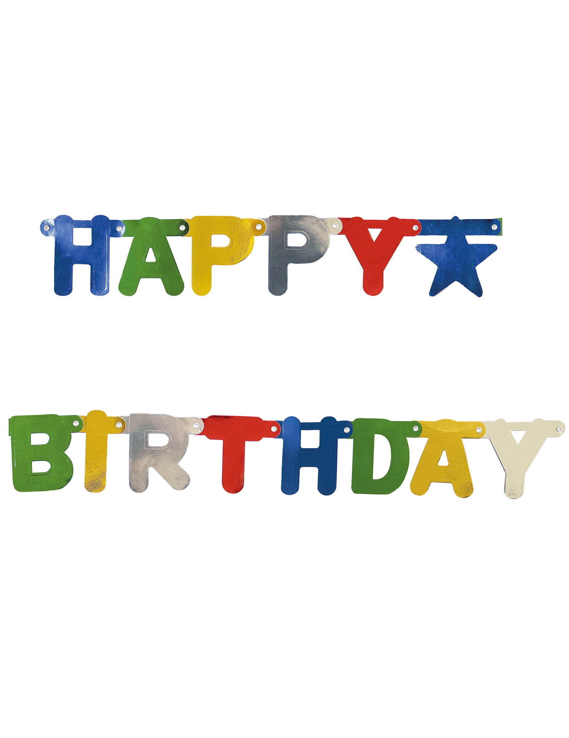 Această ghirlandă articulată este alcătuită din scrisori care formează mesajul „La mulți ani” Scrisorile sunt realizate din carton metalizat și colorat. Garland măsoară aproximativ 156 cm lungime E 11,3 cm lățime. Această ghirlandă la mulți ani va fi perfectă pentru ziua ta de naștere.
