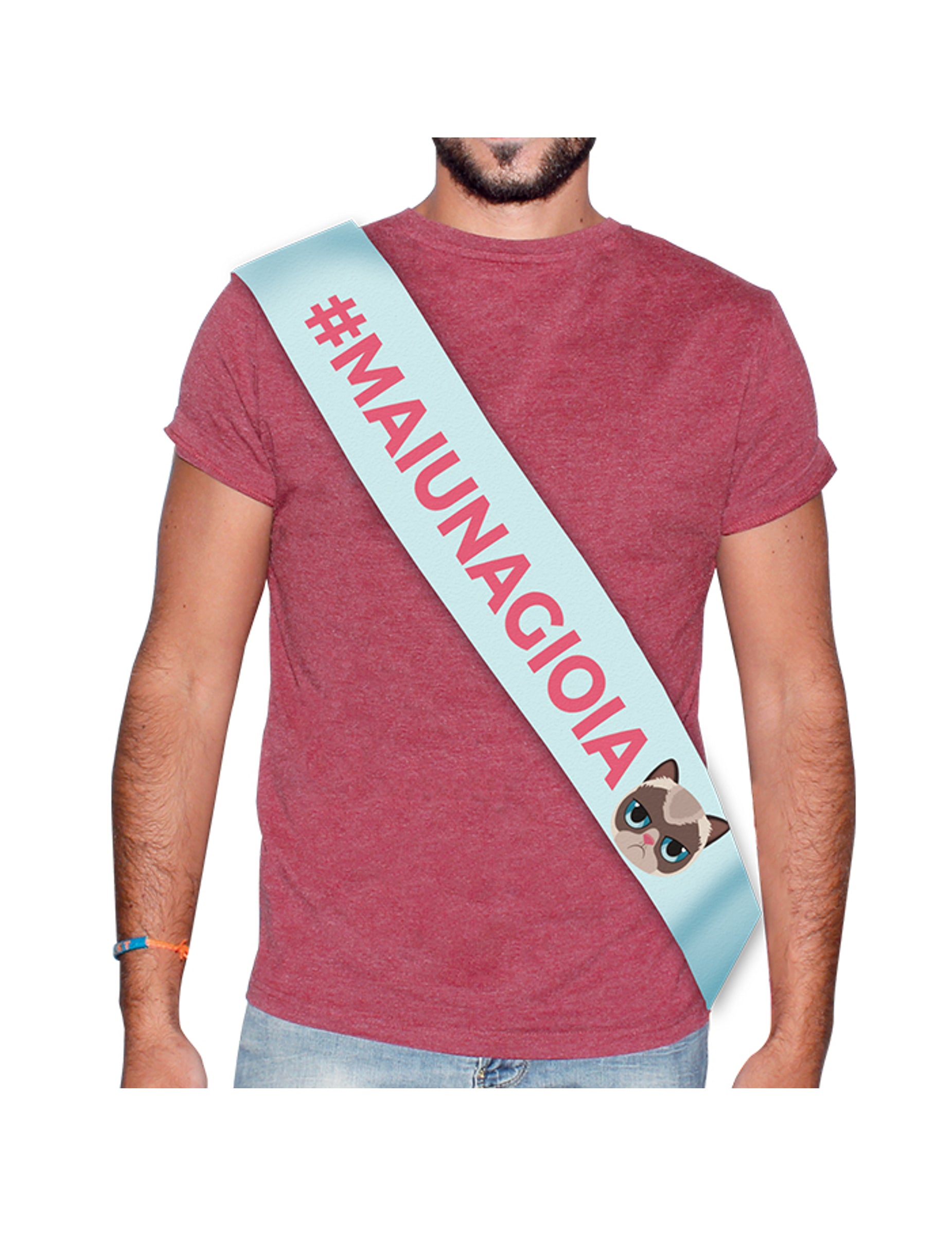 Eșarfă din satin albastru Maiunagioia. Dimensiuni: 168 x 10 cm.