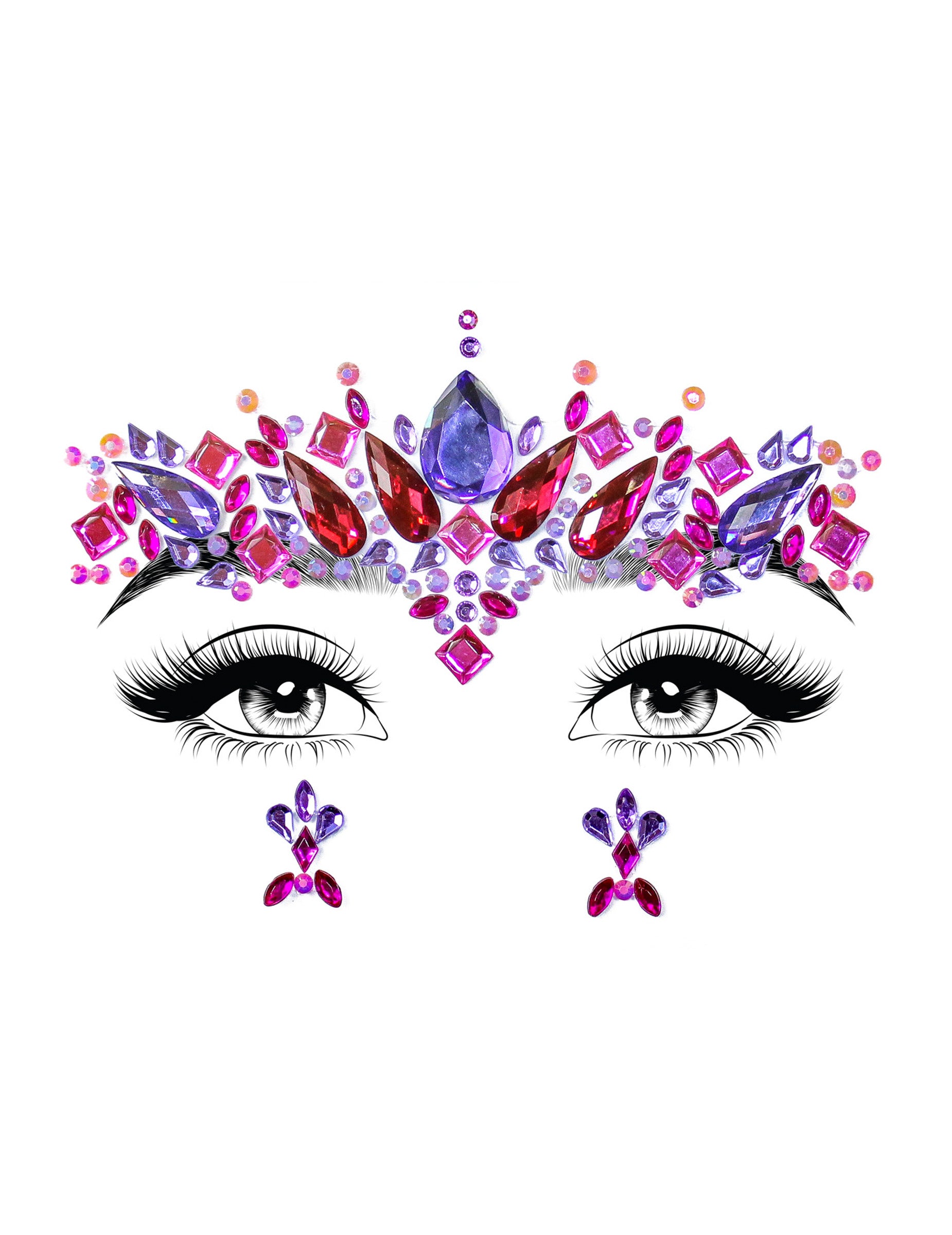 Aceste bijuterii pentru față sunt alcătuite din pietre false și strasuri. Sunt în nuanțe de violet, roz și roșu. Livrate pe un film transparent, aceste bijuterii faciale sunt adezive. Vor fi perfecte pentru a crea un machiaj incredibil în doar câteva secunde.