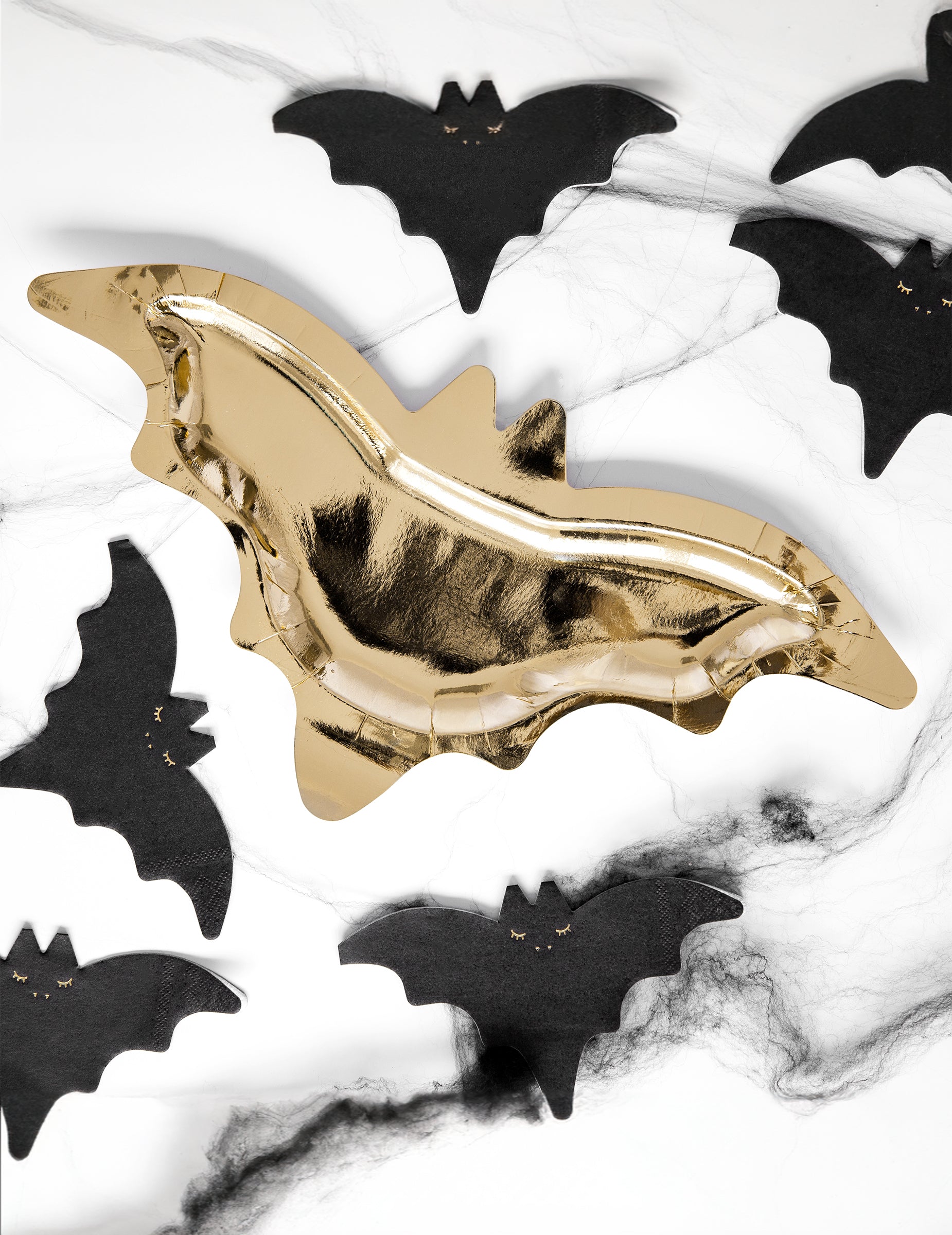 6 farfurii de carton metalice aurii în formă de liliac pentru Halloween