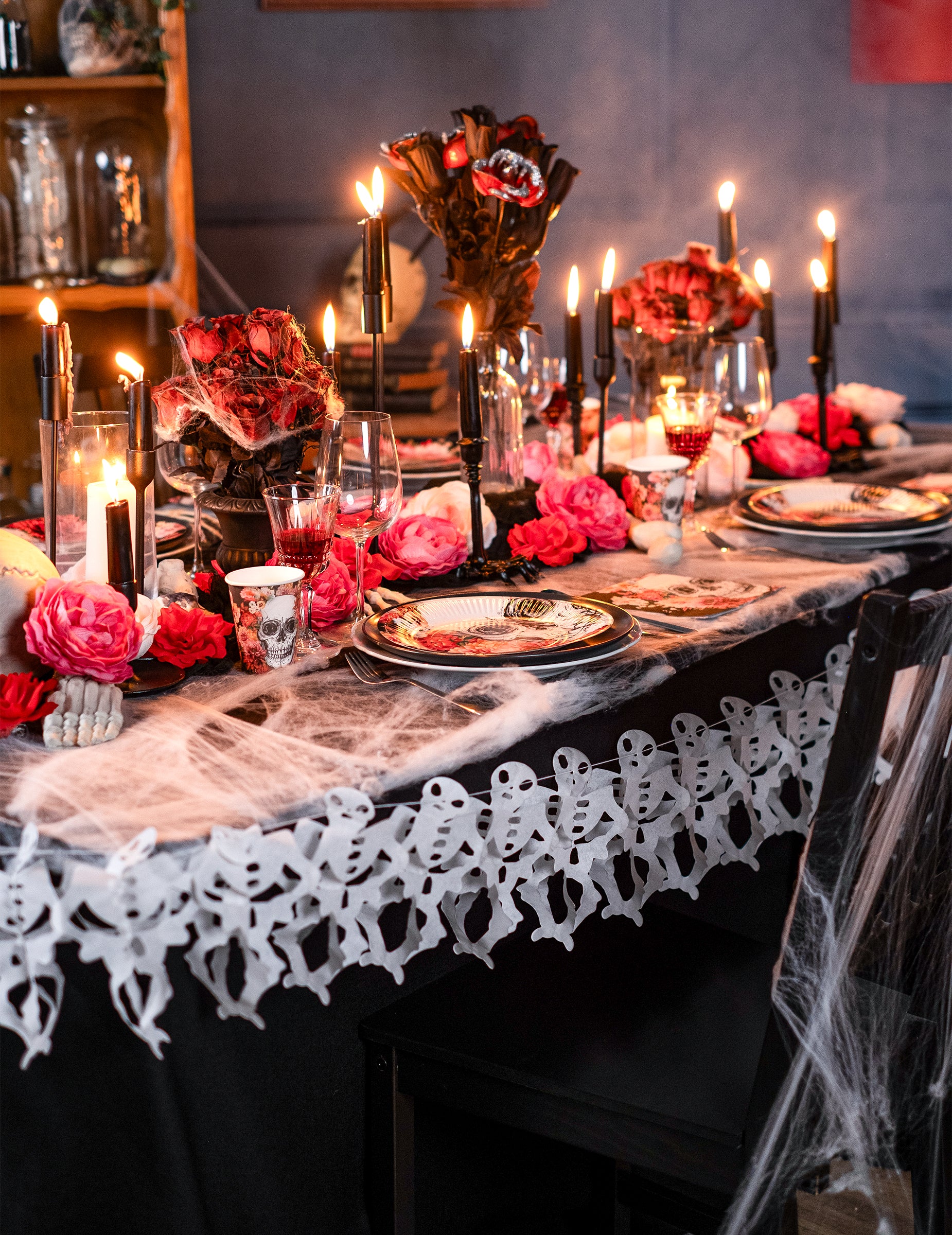 Măsurând 3 metri lungime, aceasta ghirlandă va fi perfect pentru decorarea pereților. Este alcătuit din mai multe elemente mici schelete în hârtie albă. Pentru o atmosferă terifiantă, încorporați acest lucru ghirlandă schelet la petrecerea taHalloween !