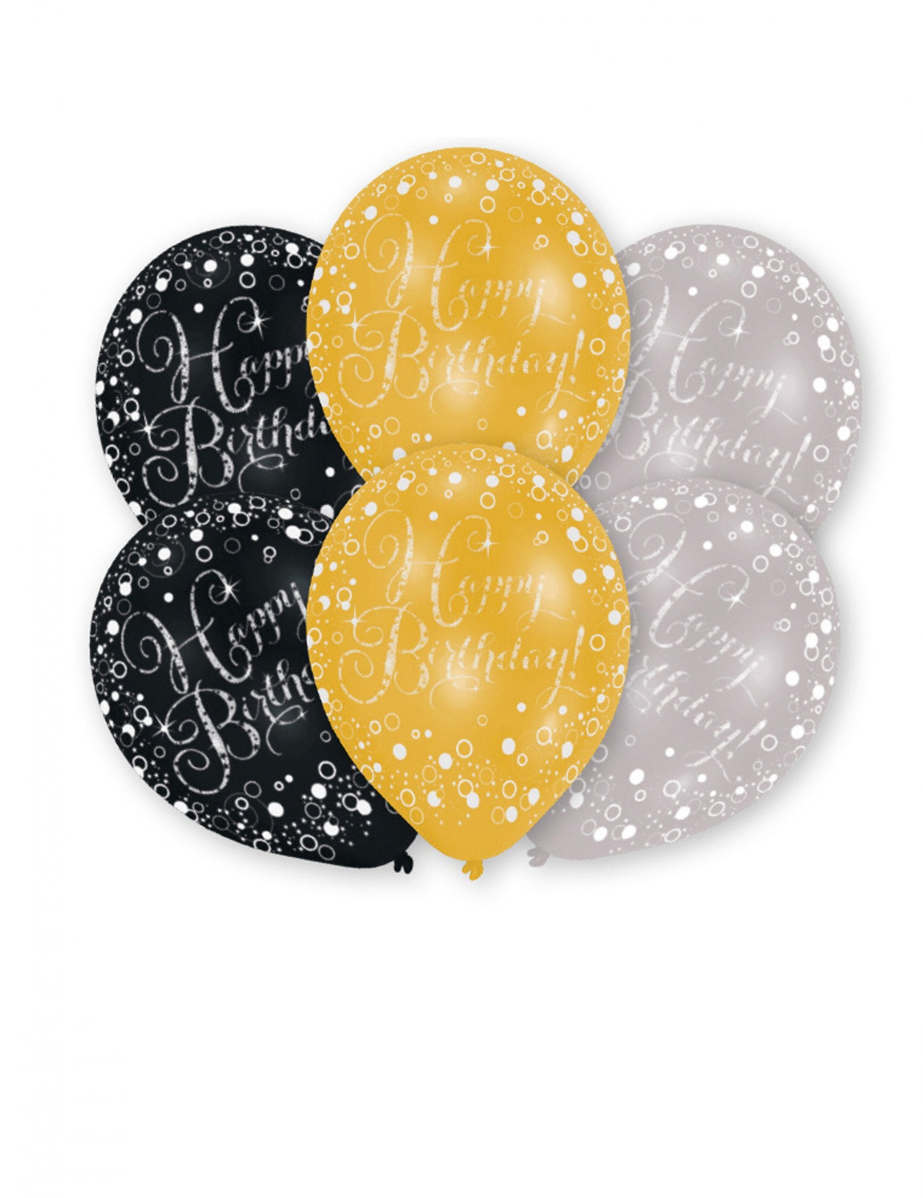 Îmbunătățiți-vă decorațiunile pentru petrecere cu acest set de 6 baloane strălucitoare de sărbătoareFabricate din latex rezistent, acestea măsoară aproximativ 27 cm Sunt înalte când sunt umflate. Culorile lor negru, auriu și argintiu, combinate cu mesajul „la mulți ani”, adaugă o notă elegantă și festivă evenimentului tău. Aceste articole sunt accesoriul ideal pentru sărbătorește-ți ziua de naștere strălucitoare cu eleganță.