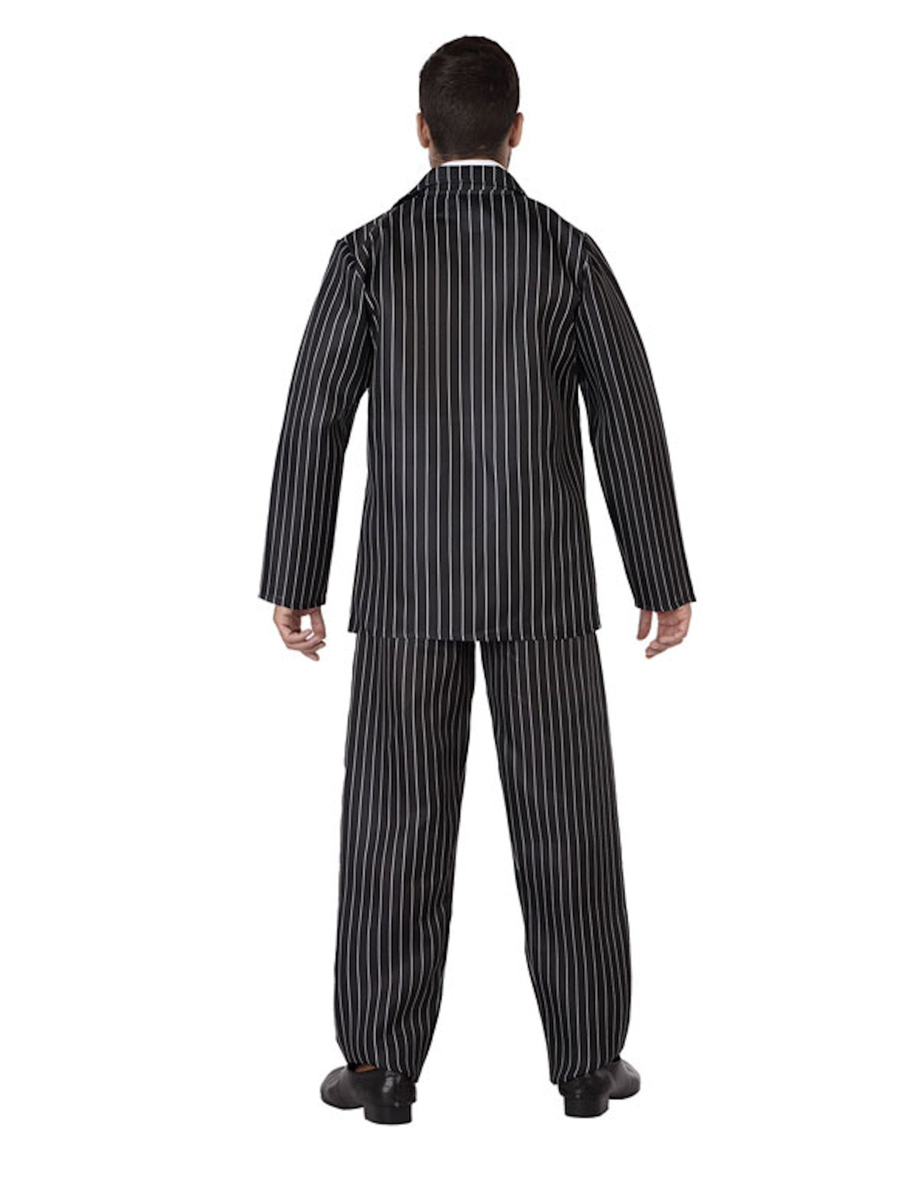 Acest costum familial morbid este destinat bărbaților, este format dintr -o geacă, o pasă falsă, o cravată și pantaloni. (Trandafirul și trabucul nu sunt incluse) Jacheta este o geacă croită pentru bărbați, este negru cu dungi albe, patru butoane albe sunt amplasate în centrul acestui sacou ca clip. Un guler alb fals completează această ținută, cu o cravată roșie care se topește în croitor. Pantalonii sunt negri cu zgârieturi albe pentru a se conecta la sacou. Acest costum al familiei morbide va fi perfect pentru a întruchipa un personaj celebru de film în timpul serilor voastre deghizate sau pentru Halloween.