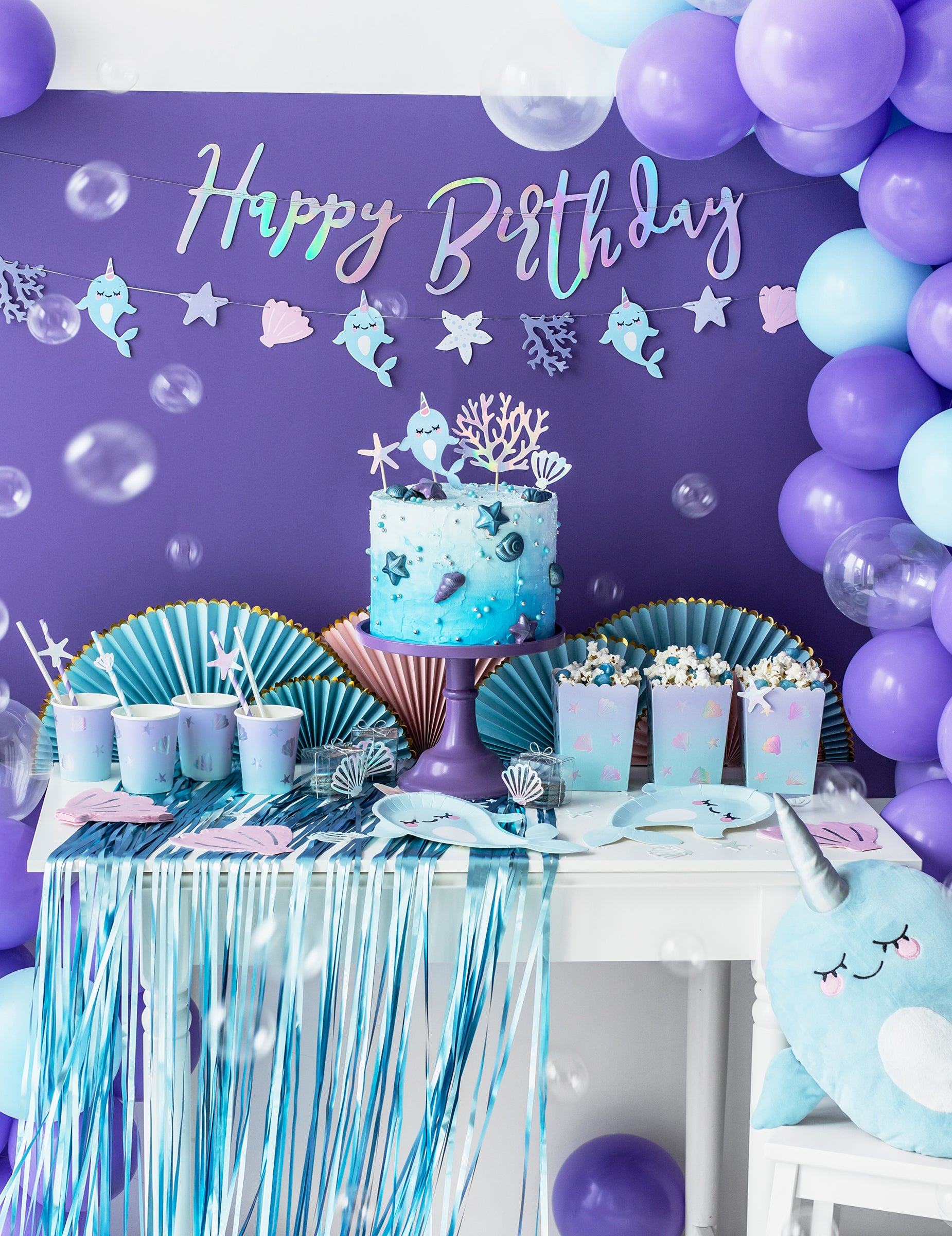 Această ghirlandă de carton măsoară aproximativ 62 cm lung și 16,5 cm ridicat. Afișează inscripția „La mulți ani” în tonuri iridescente, pentru un efect luminos și festiv. Ușor de agățat datorită capetelor sale pre-pilot, va fi perfect pentru crearea unui decor luminos și modern de naștere.