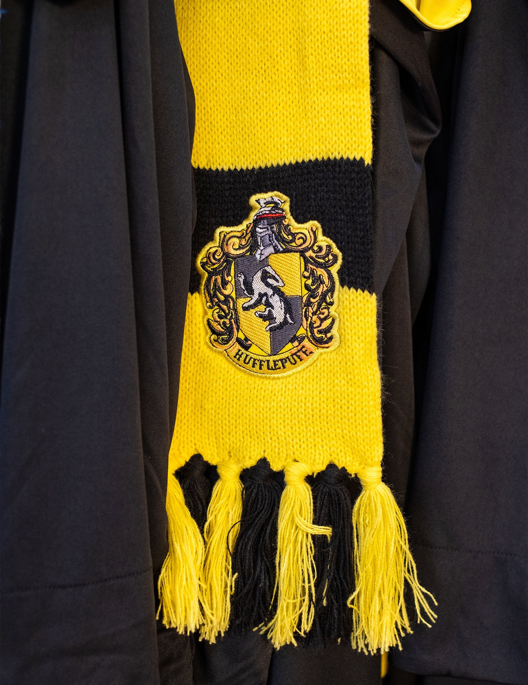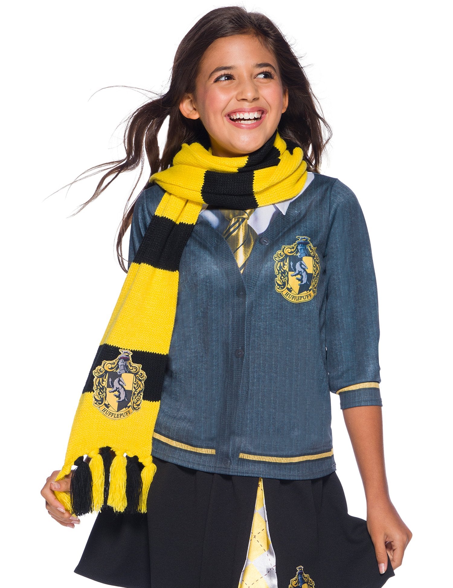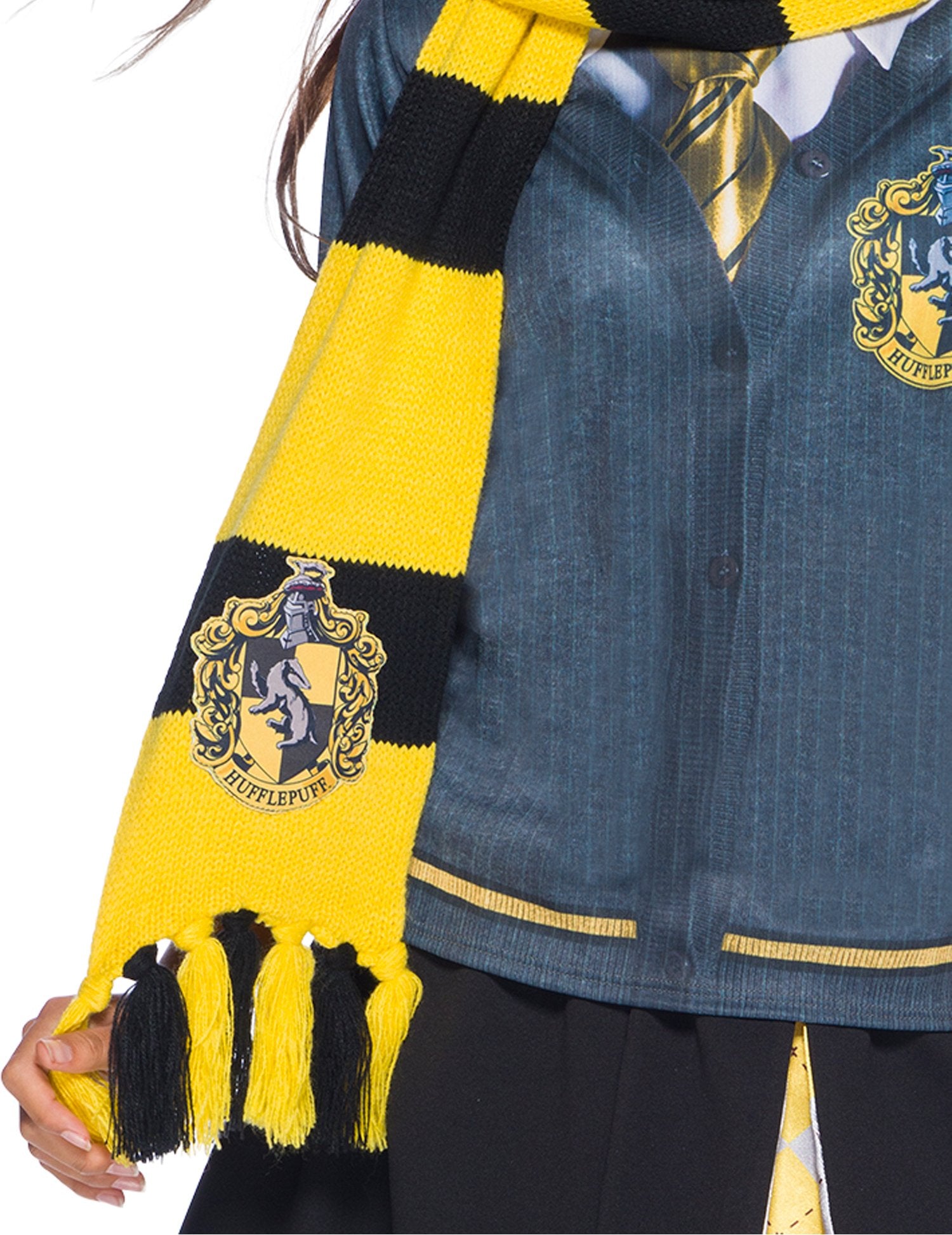 Această eșarfă pentru adulți și copii se află sub licența oficială Harry Potter. Această eșarfă proiectată în culorile casei Pouffsouffle are pompe pe fiecare parte. Are o lungime de aproximativ 2 metri și are stema casei cusute pe ea. Eșarfa ideală pentru a integra casa Pouffsouffle pentru o seară deghizată!