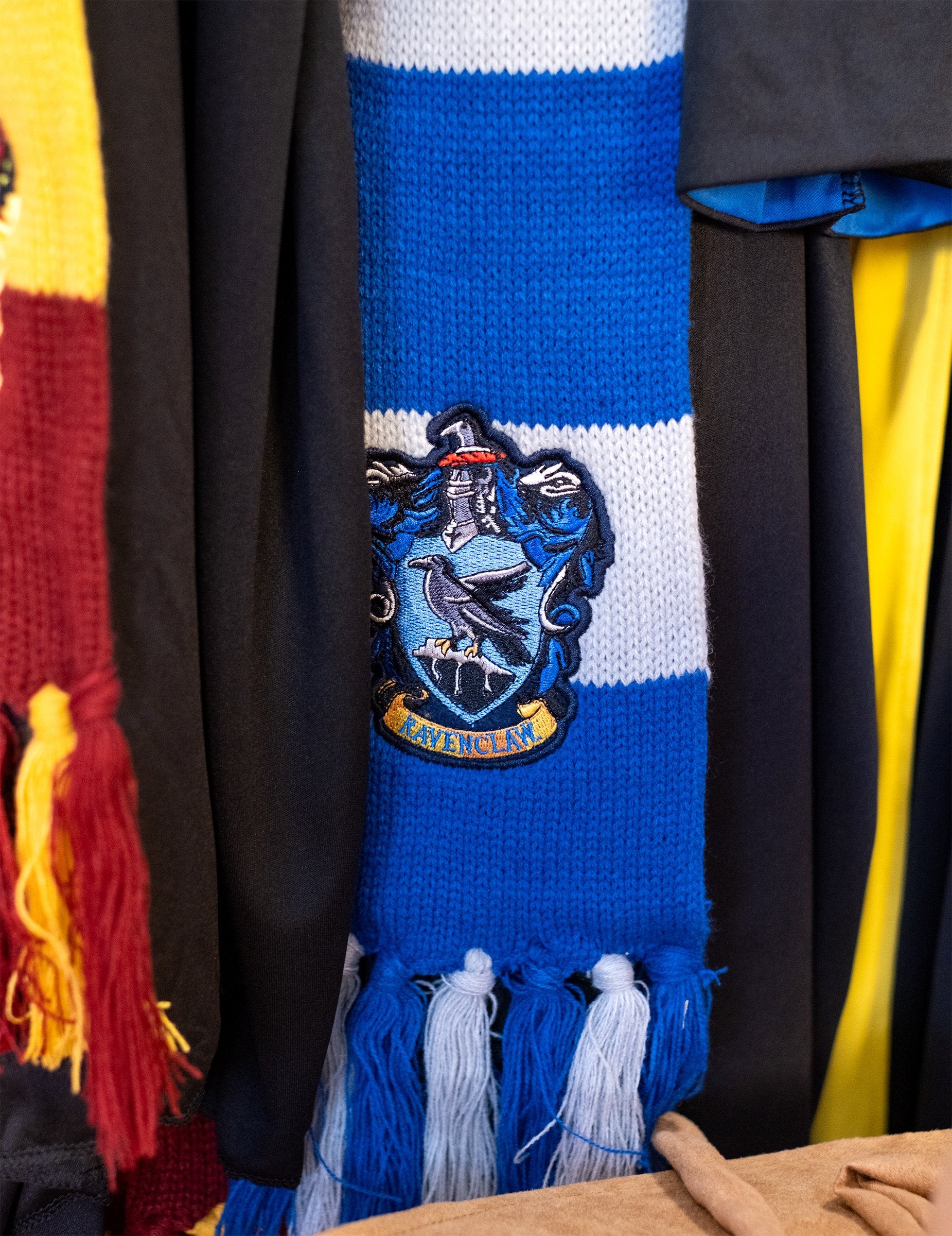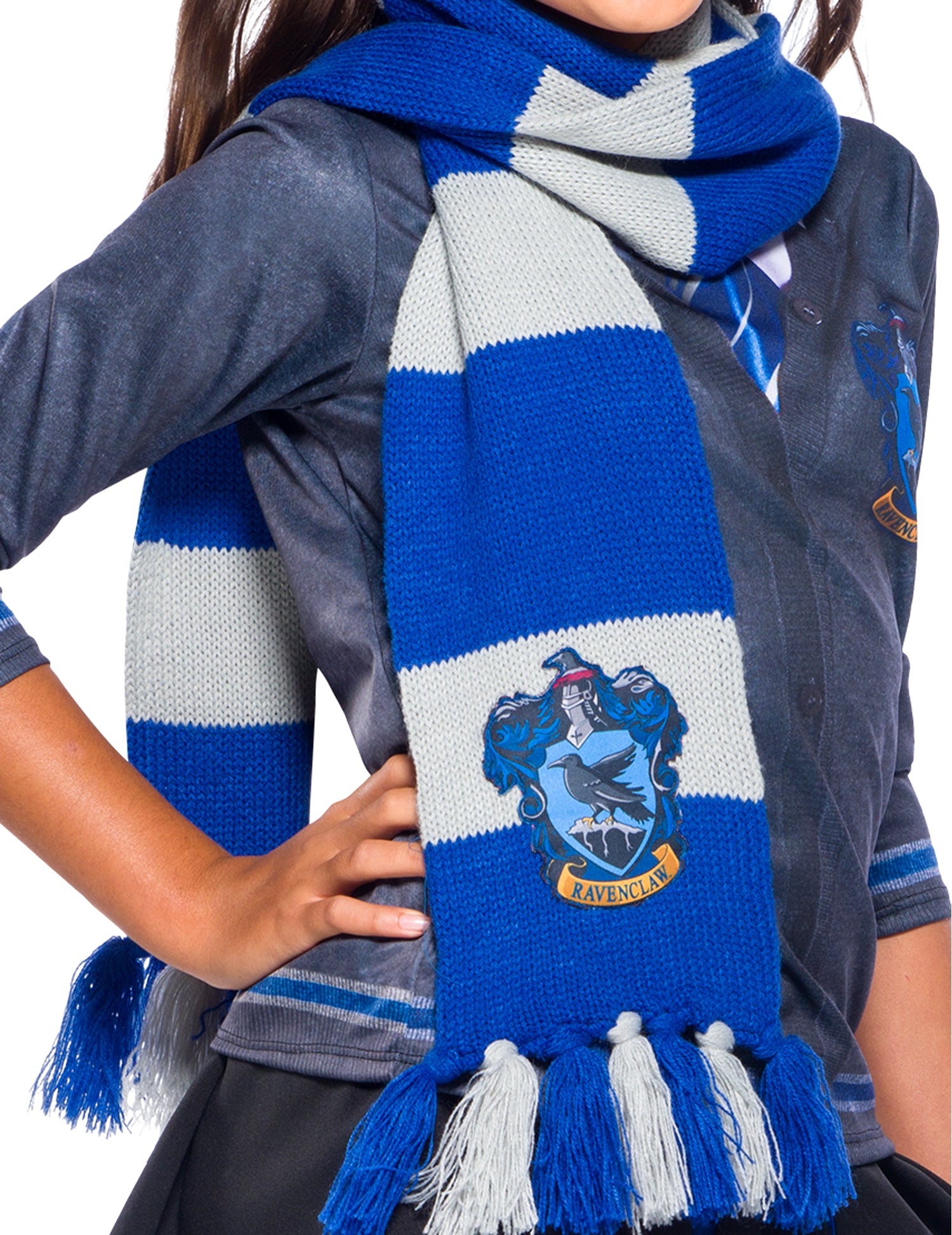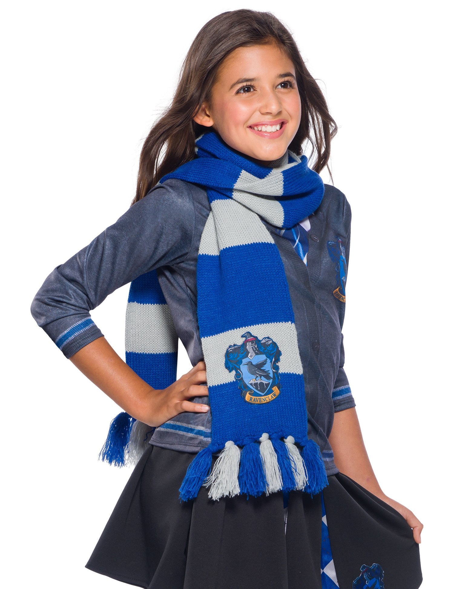 Această eșarfă Ravenclaw se află sub licența oficială a lui Harry Potter. Este cu dungi albastre și albe și măsoară aproximativ 2 m lungime. Stema casei Lavedaigle este tricotată pe această eșarfă. Acest lucru va fi perfect pentru completarea costumului de vrăjitor Hogwarts pentru o petrecere tematică Harry Potter.