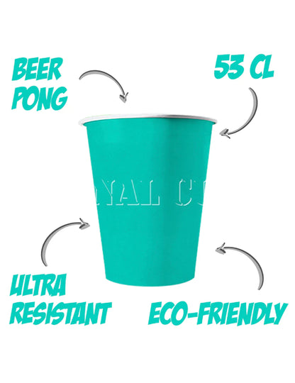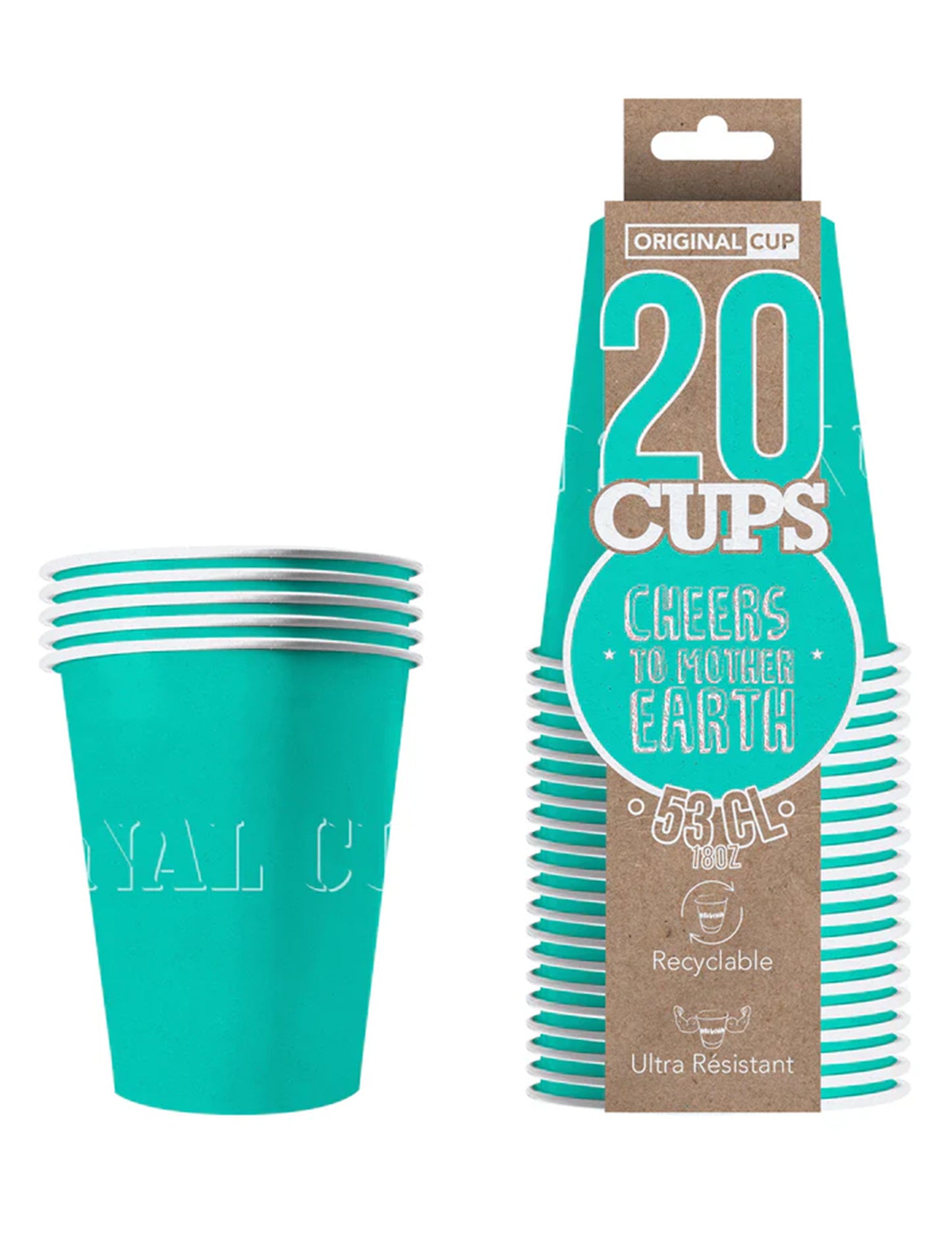Acest lot este format din 20 de cupe uriașe. Într -adevăr, au o capacitate de aproximativ 53 cl. Turcoaz albastru, aceste căni sunt confecționate din carton rezistent, dar și reciclabile. Fiecare ceașcă deține inscripția: „Cupa originală”. Vor fi perfecte pentru a aduce culoare în decorarea ta de masă.