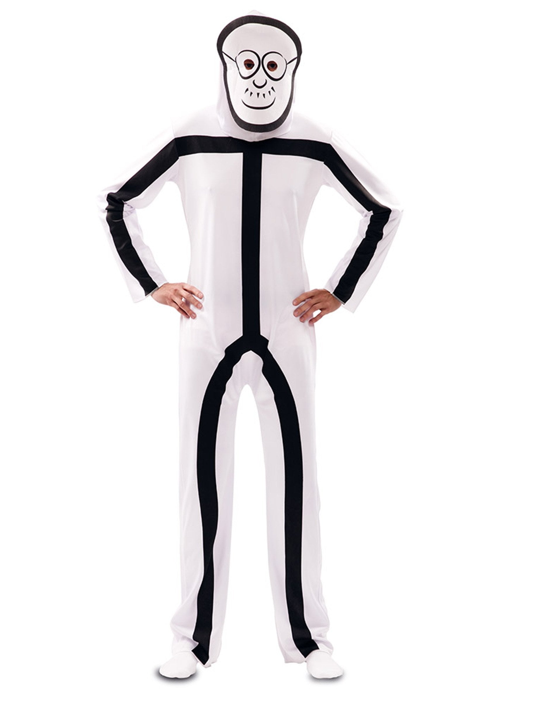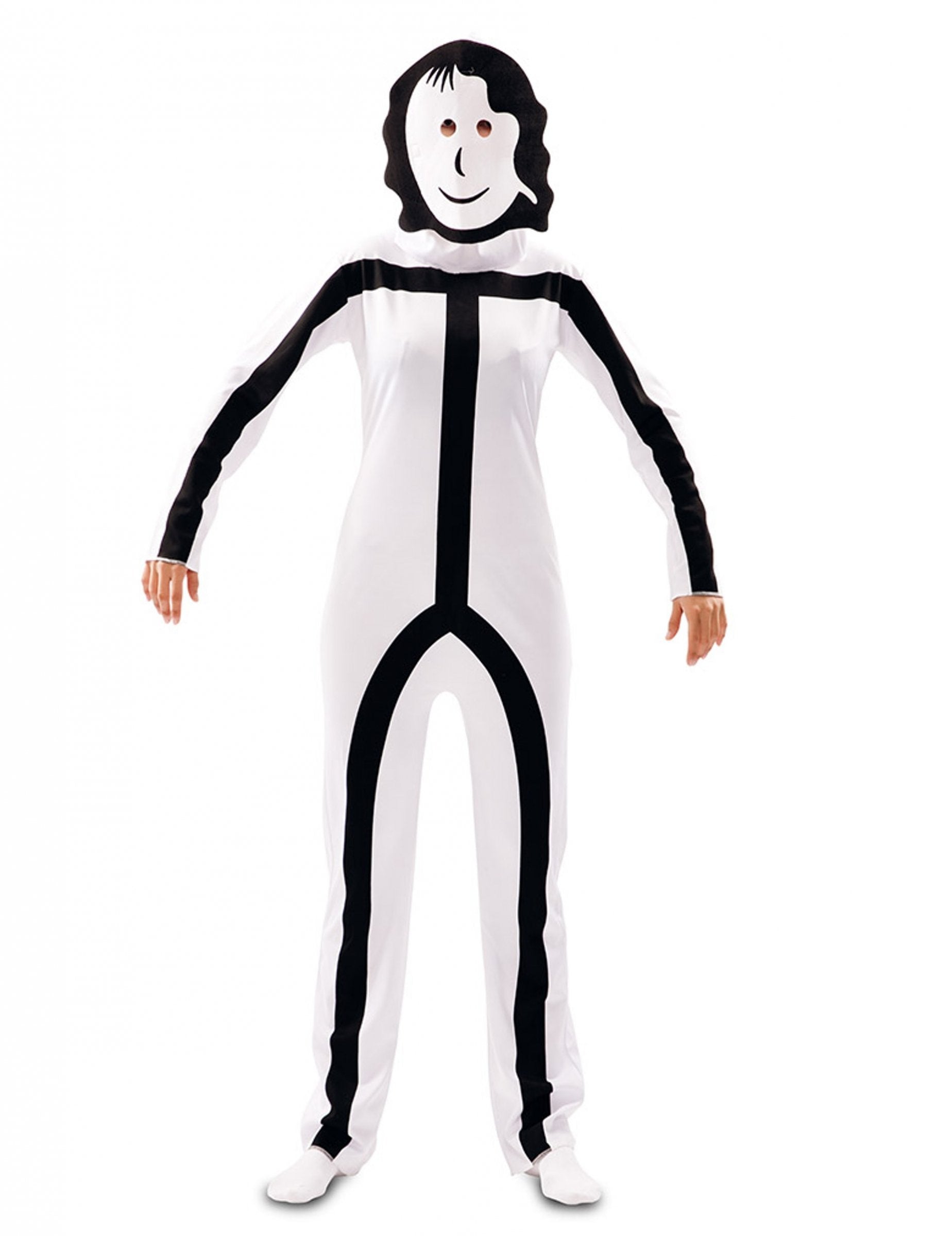 Acest costum pentru adulți Stickman are o combinație și 2 măști. Combinația este fluidă și alb. Un imprimeu negru reprezintă corpul unui om de băț. Două măști sunt incluse. Unul reprezintă chipul unui bărbat Bâron și celălalt al unei femei cu băț. Acest costum de personaje de joc video va fi perfect pentru o seară deghizată pe tema umorului sau a personajelor.