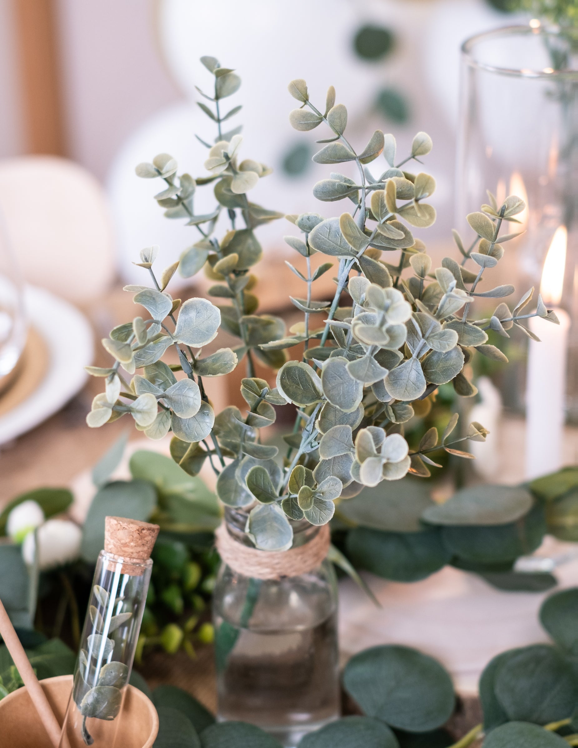 Sublimez votre décoration avec ce bouquet d'eucalyptus d'un vert éclatant, mesurant environ 35 cm. Idéal pour apporter une note de fraîcheur lors d'un mariage, d'un baptême ou d'une baby shower, ce feuillage artificiel s'adaptera à toutes vos envies de création. Choisissez ce bouquet d'eucalyptus pour une décoration végétale réussie et élégante.