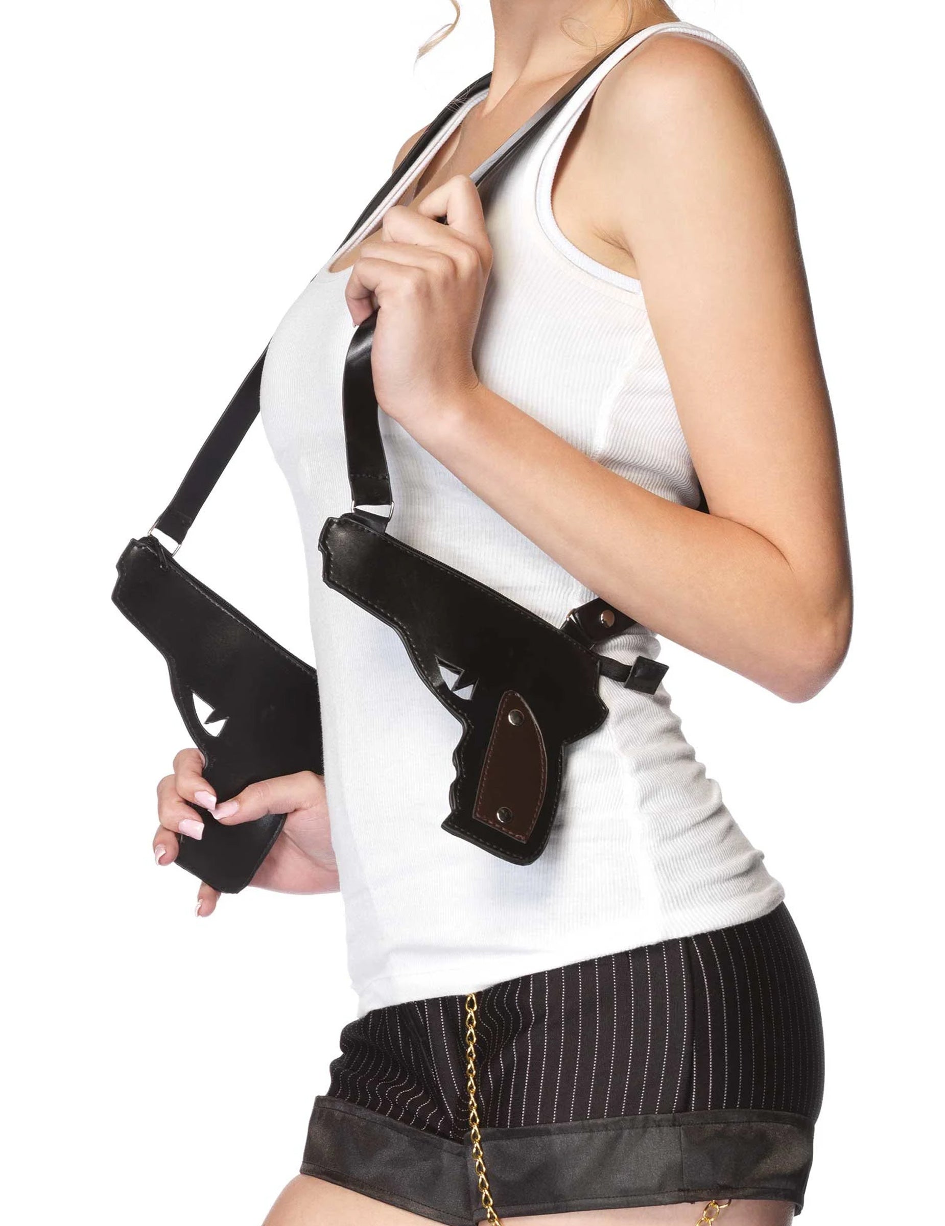 Acest caz dublu revolver este destinat adulților. Ea are două mânere mari pentru a trece pe fiecare umăr pentru a menține carcasele perfect pe tine. Acest accesoriu va fi perfect pentru a finaliza o deghizare cu ocazia următoarei petreceri tematice.