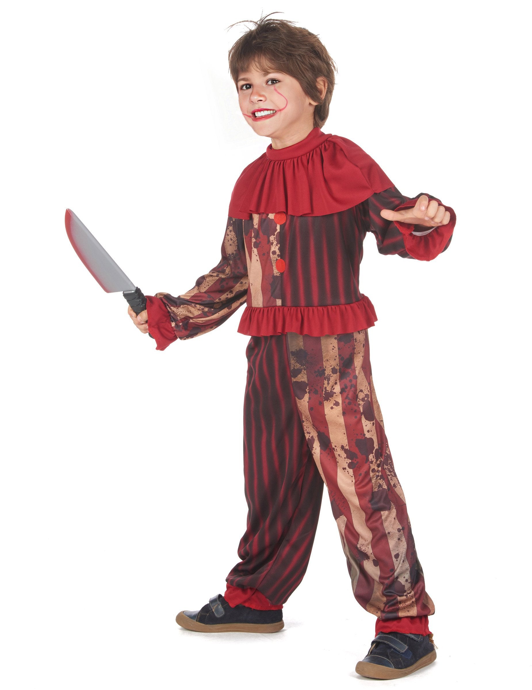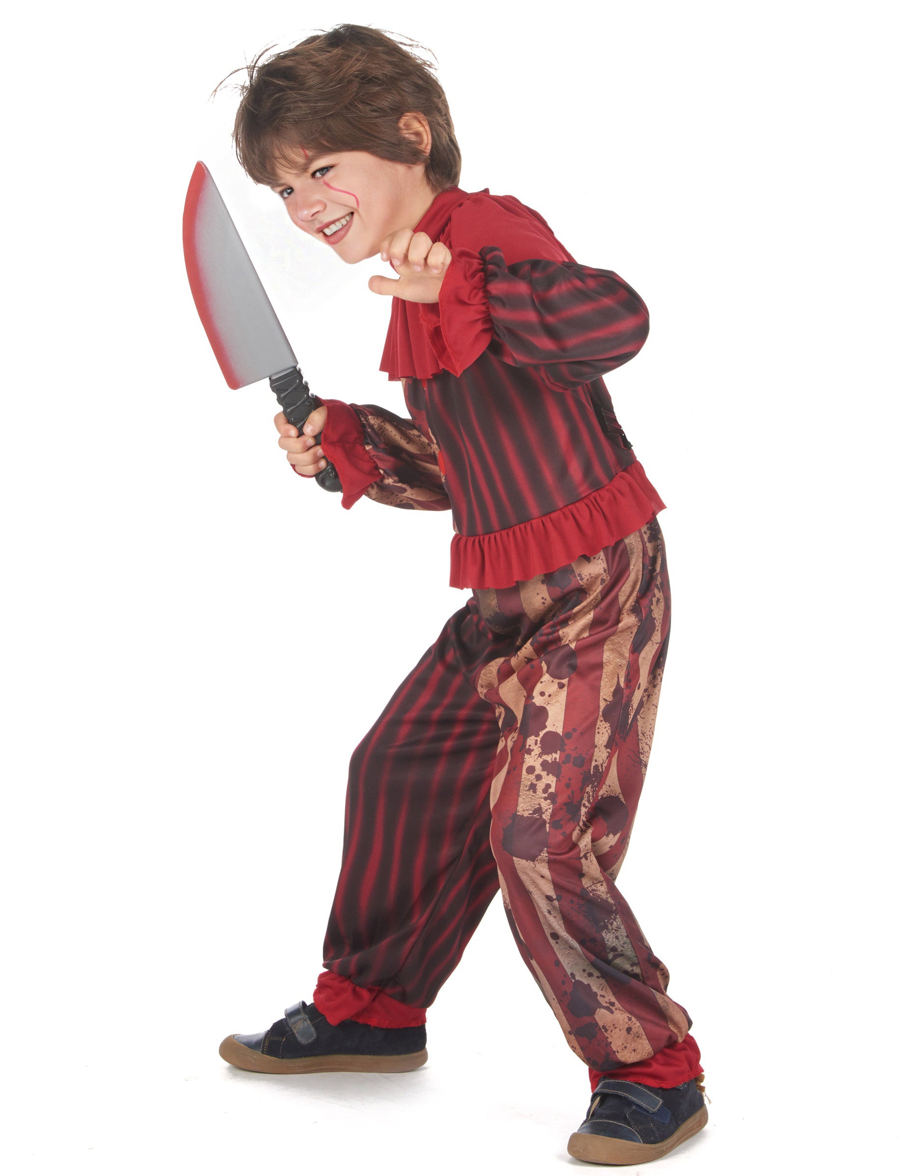 Acest costum terifiant de clovn pentru băiat include gulerul și combinația (cuțit, bilă și încălțăminte nu sunt incluse). Combinația este roșie cu zgârieturi. Pare sângeros datorită mai multor sarcini de sânge. Este decorat cu diferite fragmente roșii la dimensiune, precum și la încheieturi și glezne. Mânecile sunt largi și strânse pe încheieturi. Gulerul este roșu și cade pe umeri. Băiatul tău va fi cel mai înfricoșător cu acest costum terifiant de clovn cu ocazia unei petreceri de Halloween!