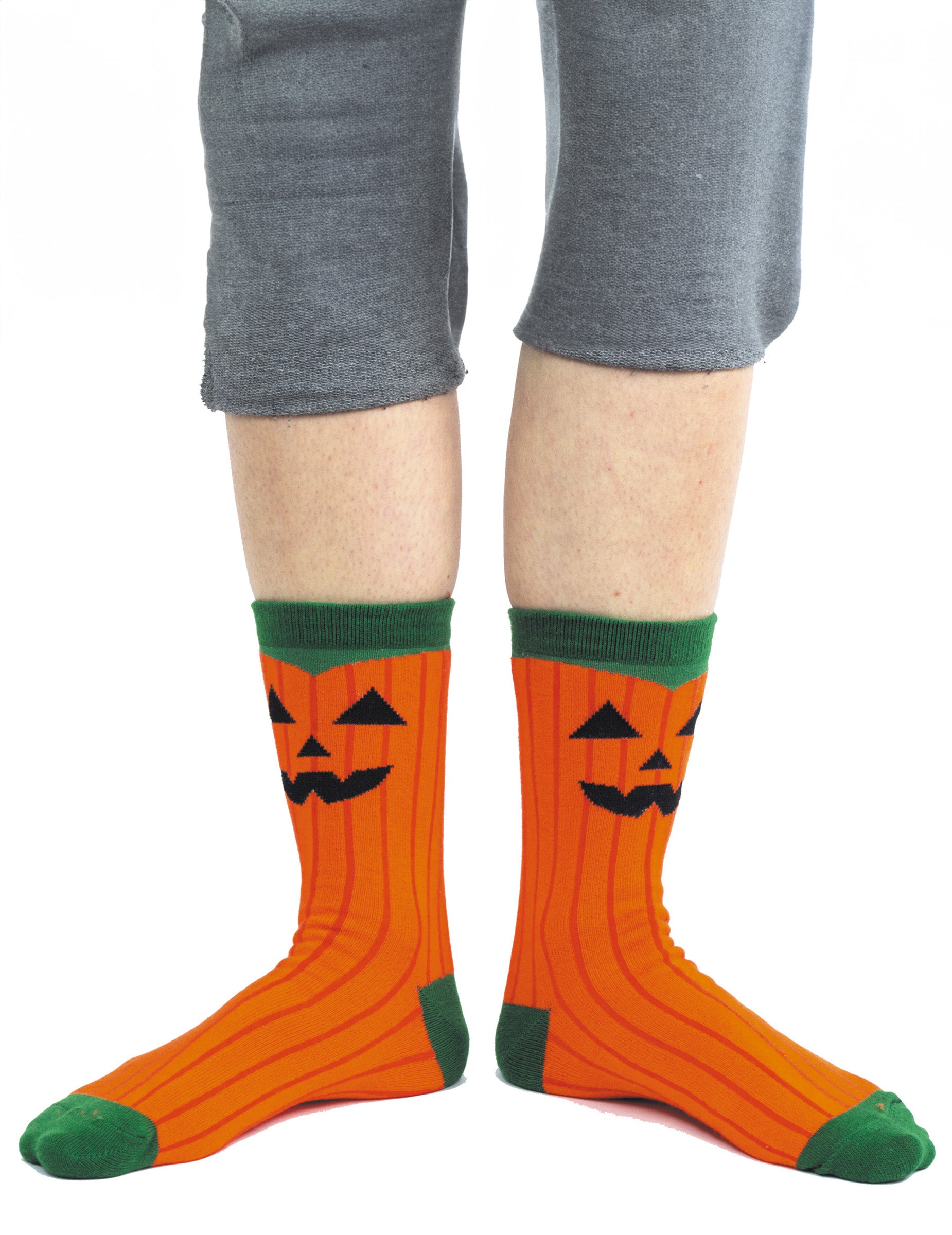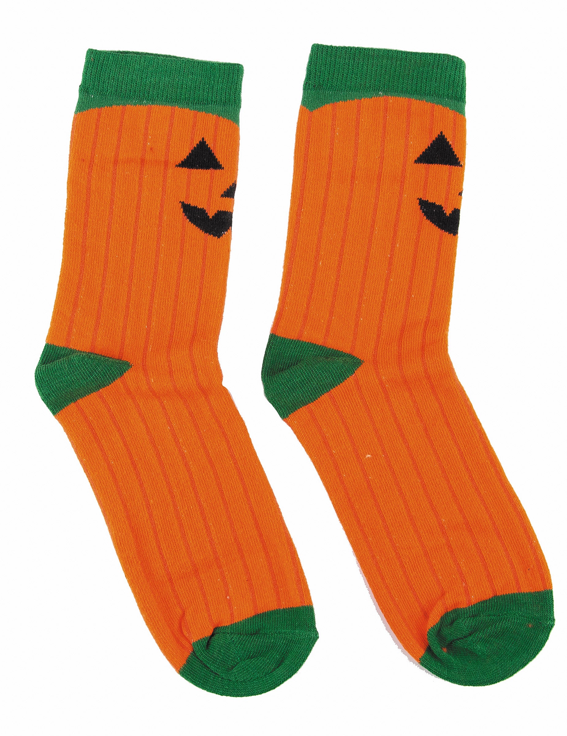 Această pereche de șosete are o singură dimensiune. Culoare portocalie și verde, această pereche de șosete reprezentate cu dovleci. Accesoriul perfect pentru a -ți completa ținuta de Halloween!