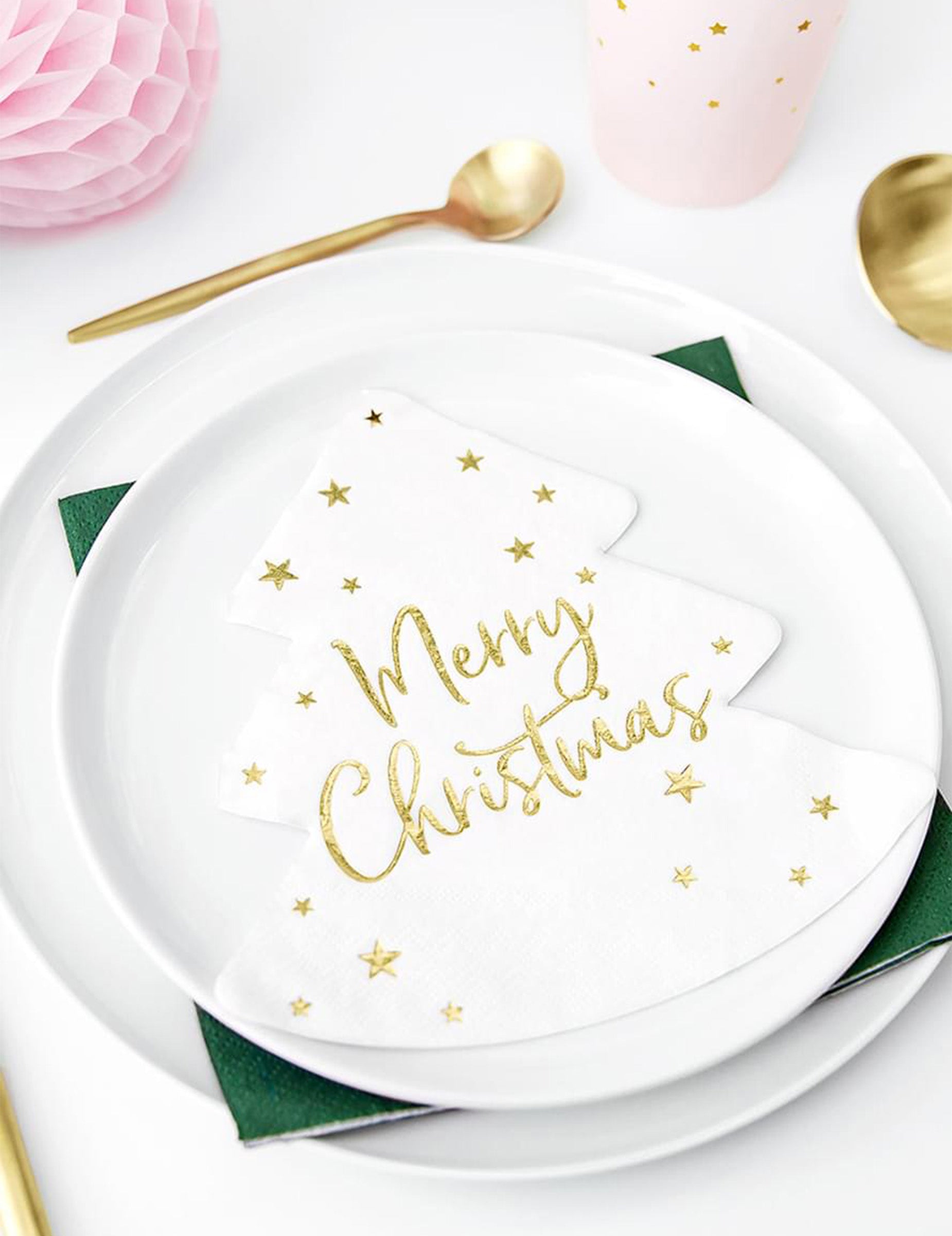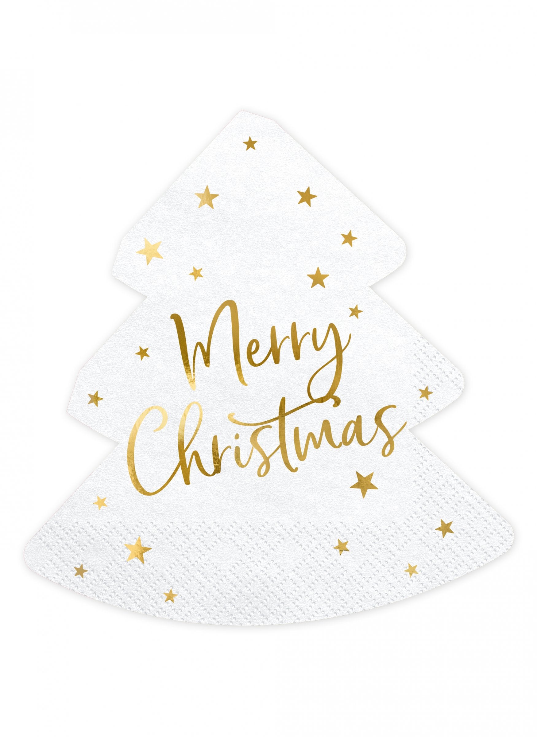 20 șervețele de hârtie cu un model de brad de Crăciun vesel, alb și auriu, 16,5 cm decorativ