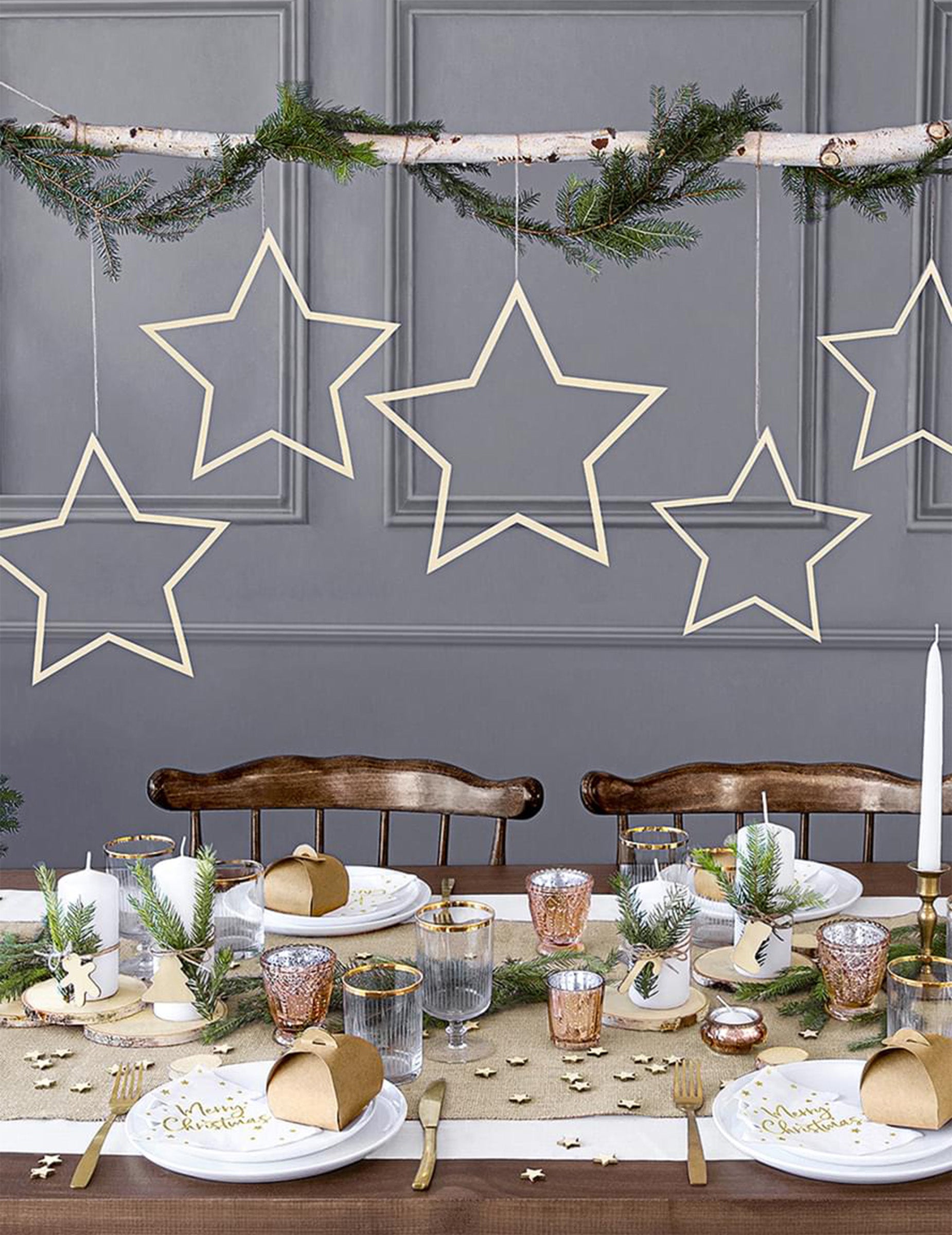 Îmbunătățiți-vă aranjamentul mesei cu acestea 20 de șervețele de hârtie originale cu dimensiunile de 16 x 16,5 cm. Prezentate în formă de brad de Crăciun alb, acestea prezintă modele frumoase cu steluțe și mesajul „Crăciun fericit” în auriu. Aceste accesorii elegante vor fi esențiale pentru un Crăciun reușit. Masa de Crăciun și încântă-ți oaspeții.
