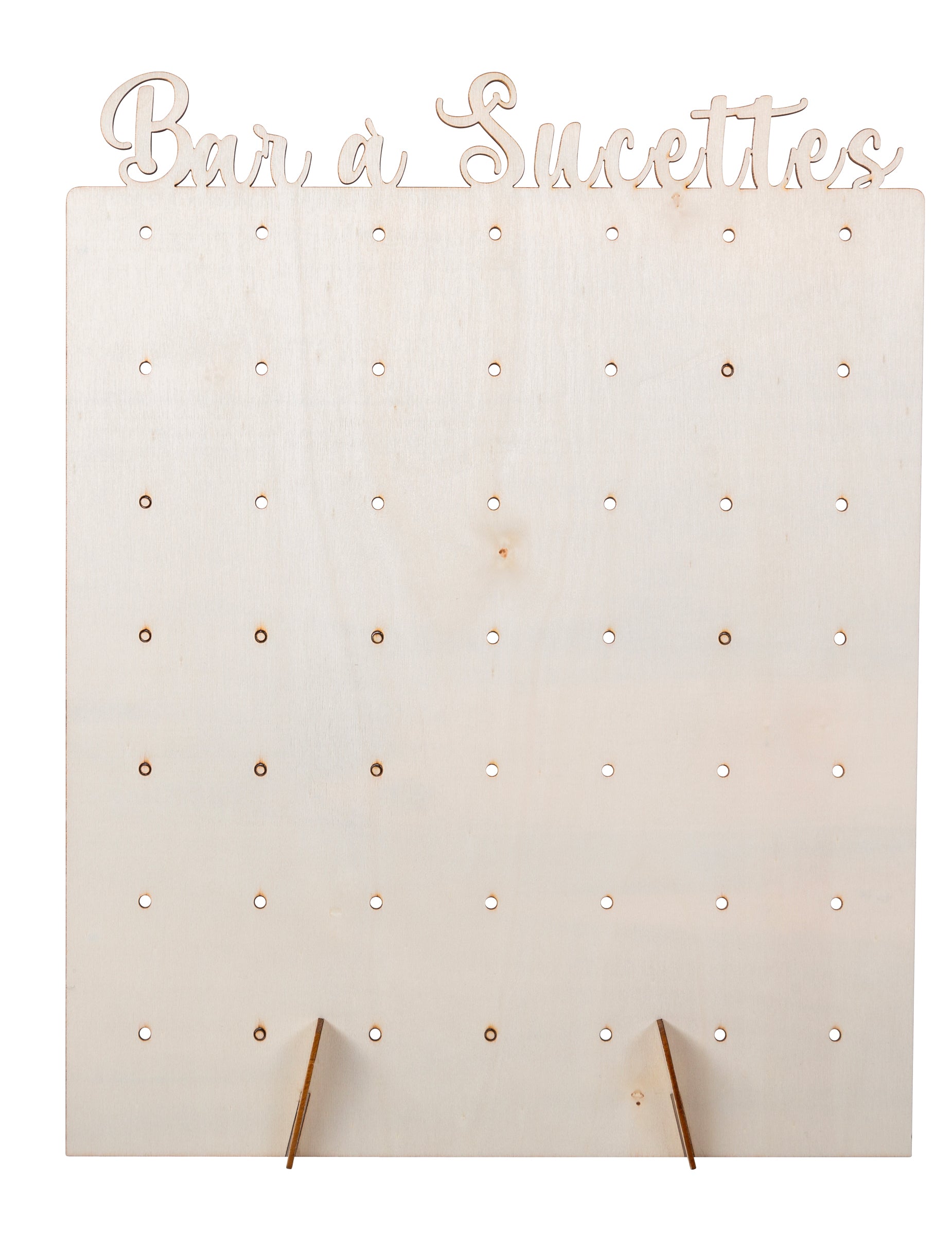 Sublimez votre table de fête avec ce présentoir à sucettes réalisé en bois, affichant des dimensions de 40 x 30 cm. Ce support fonctionnel est muni de perçages pour maintenir vos sucettes et arbore l'inscription décorative bar à sucettes. Grâce à ses deux pieds de support inclus, il offre une parfaite stabilité sur votre buffet. C'est l'accessoire de décoration parfait pour votre candy bar lors d'un mariage ou pour animer une fête d'anniversaire pleine de douceurs.
