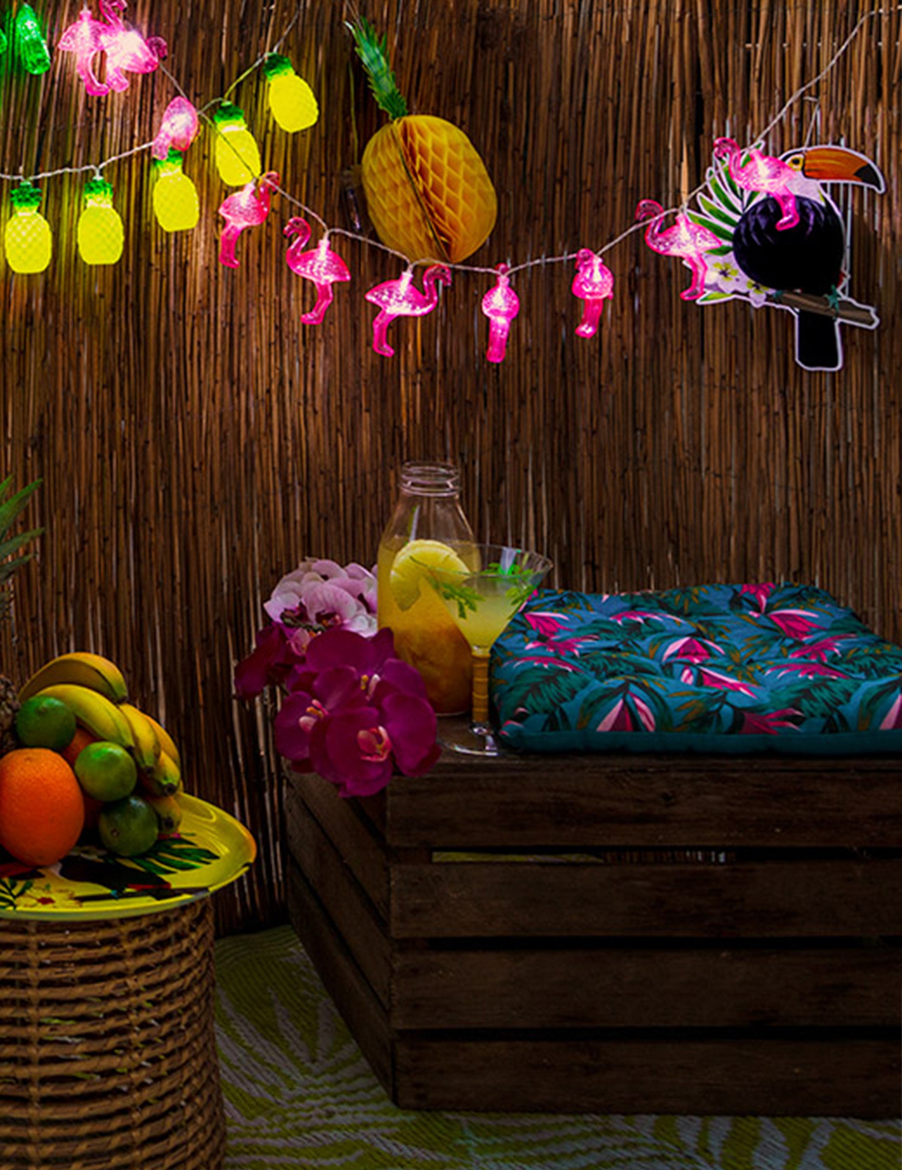 Cette suspension de 25 x 19 cm environ met en scène un toucan perché sur sa branche avec un corps en papier alvéolé. Parfaite pour une fête à thème Hawaï, elle permet de créer facilement une atmosphère de jungle exotique grâce à cette suspension toucan colorée.