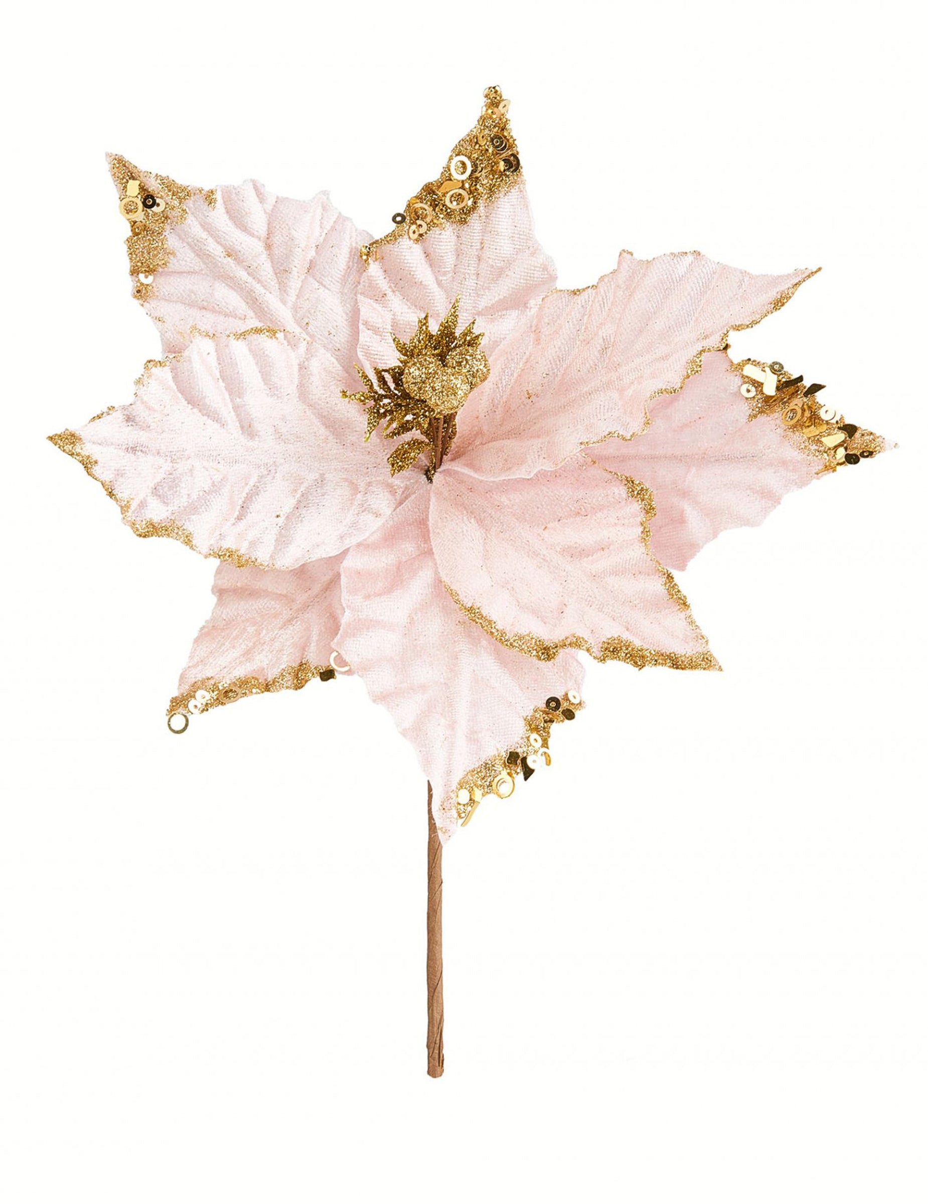 D'une longueur de 32 cm, cette magnifique fleur de noël se pare d'un coloris rose élégant. Ornée de subtiles paillettes dorées, elle apportera une touche d'éclat à votre décoration. Idéale pour créer un centre de table de noël raffiné ou pour agrémenter vos compositions florales, elle garantit une atmosphère féérique à vos fêtes de fin d'année.