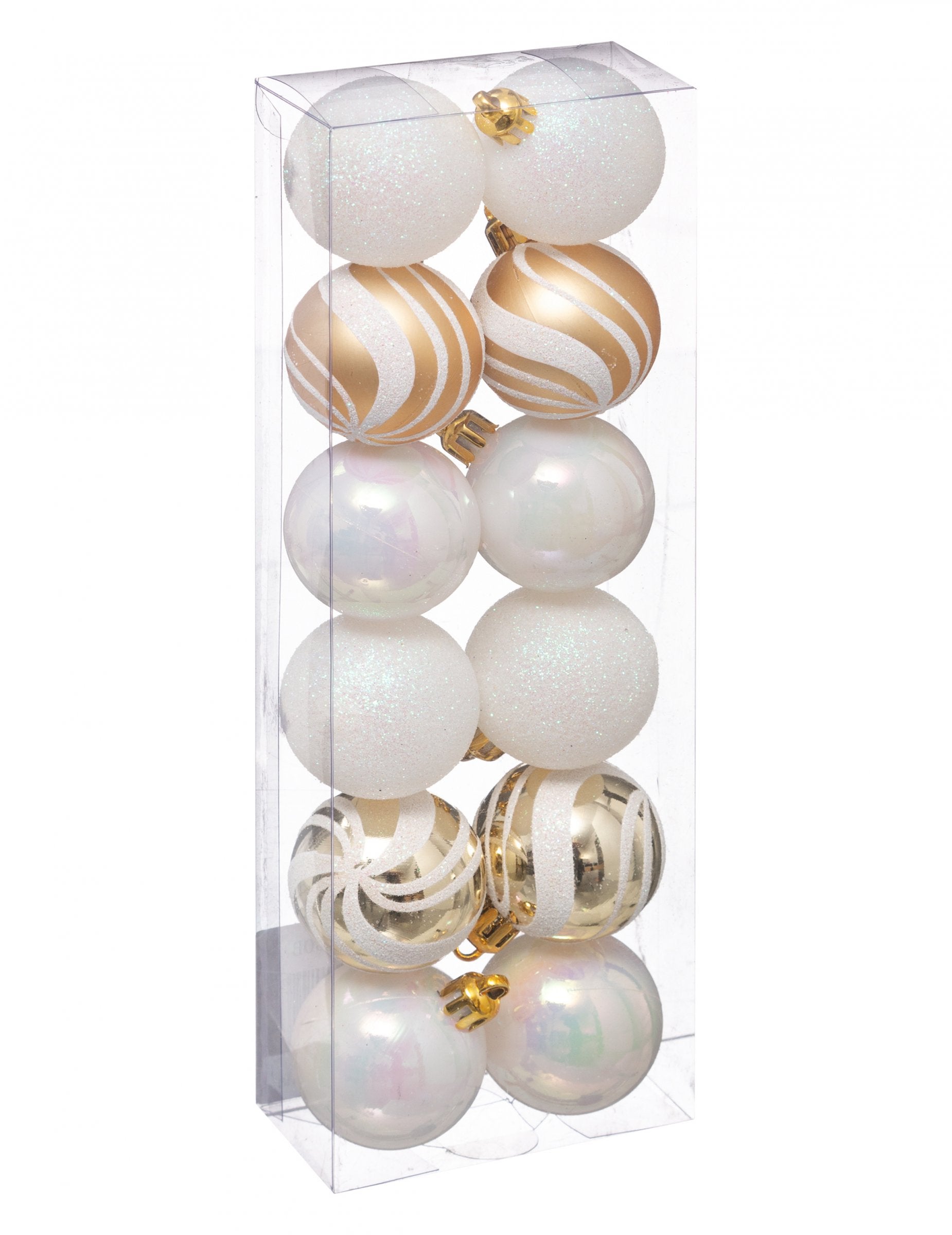 12 mini globuri de Crăciun albe și aurii 4 cm pentru brad