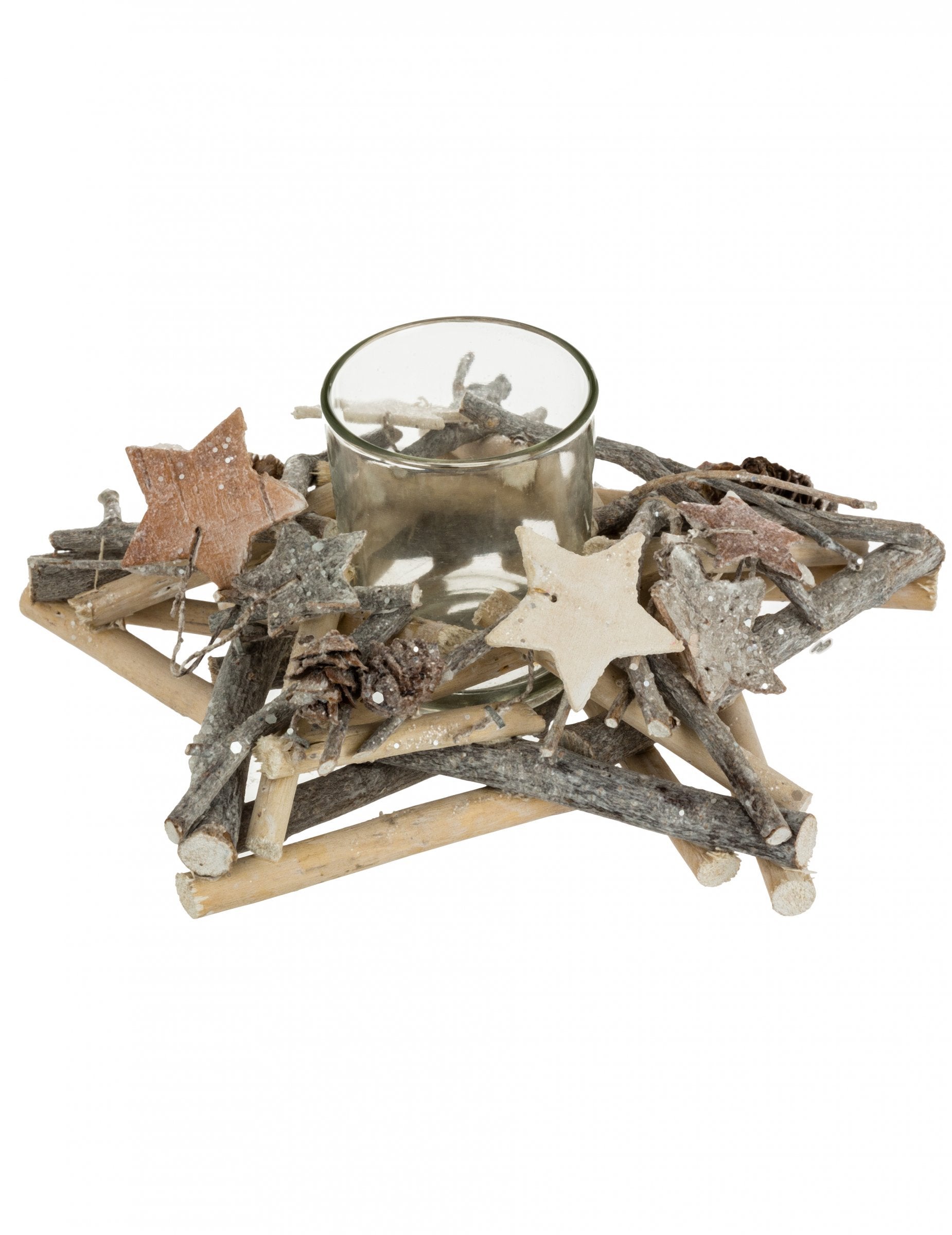 Suport de lumânare în formă de stea cu bază din lemn, 20 x 8 cm cadru natural