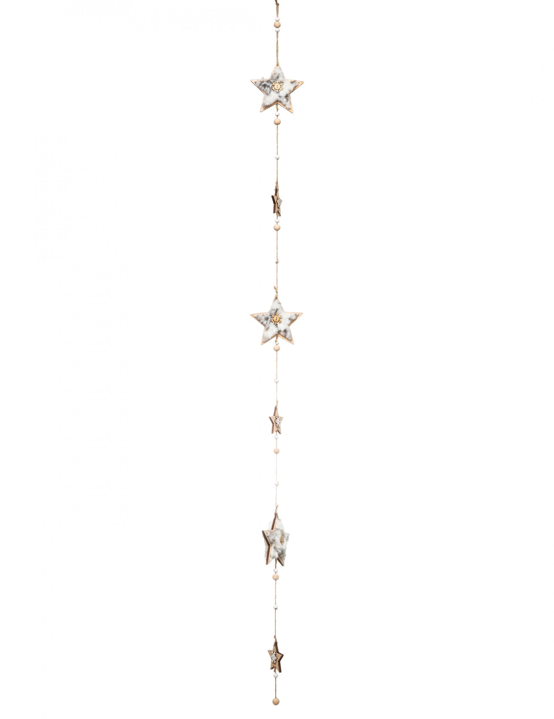 Această ghirlandă măsoară aproximativ 150 cm lungime. Este format din stele din lemn, dintre care unele sunt decorate cu blană falsă și perle mici. Pentru o decorare polară de Crăciun, această ghirlandă de stele este exact ceea ce este nevoie!