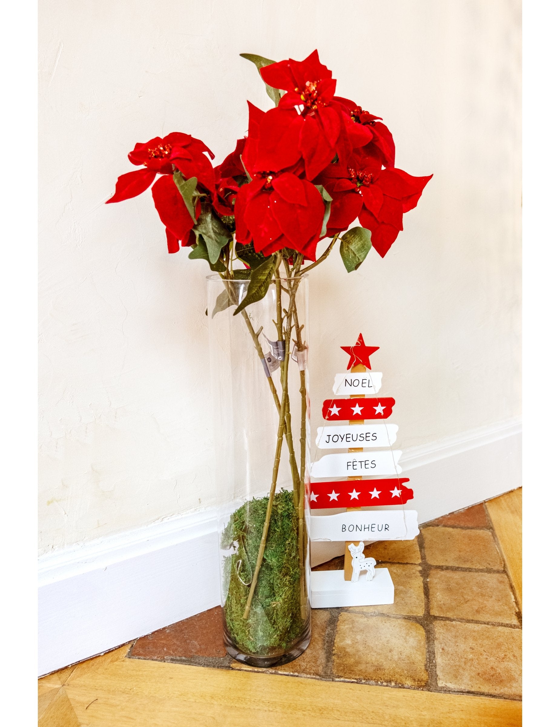 Acest brad de Crăciun iluminat 50 x 24,5 cm Acesta este elementul perfect pentru a crea o atmosferă caldă. Este alcătuit din semne roșii și albe, împodobite cu stele și urări precum „Crăciun” sau „Fericire”. Un șir de lumini LED înconjoară structura (necesită 2 baterii AA, nu sunt incluse). Ideal pentru decorarea mesei. Crăciun, optează pentru asta decorațiune de brad de Crăciun luminoasă în stilul tradițional.