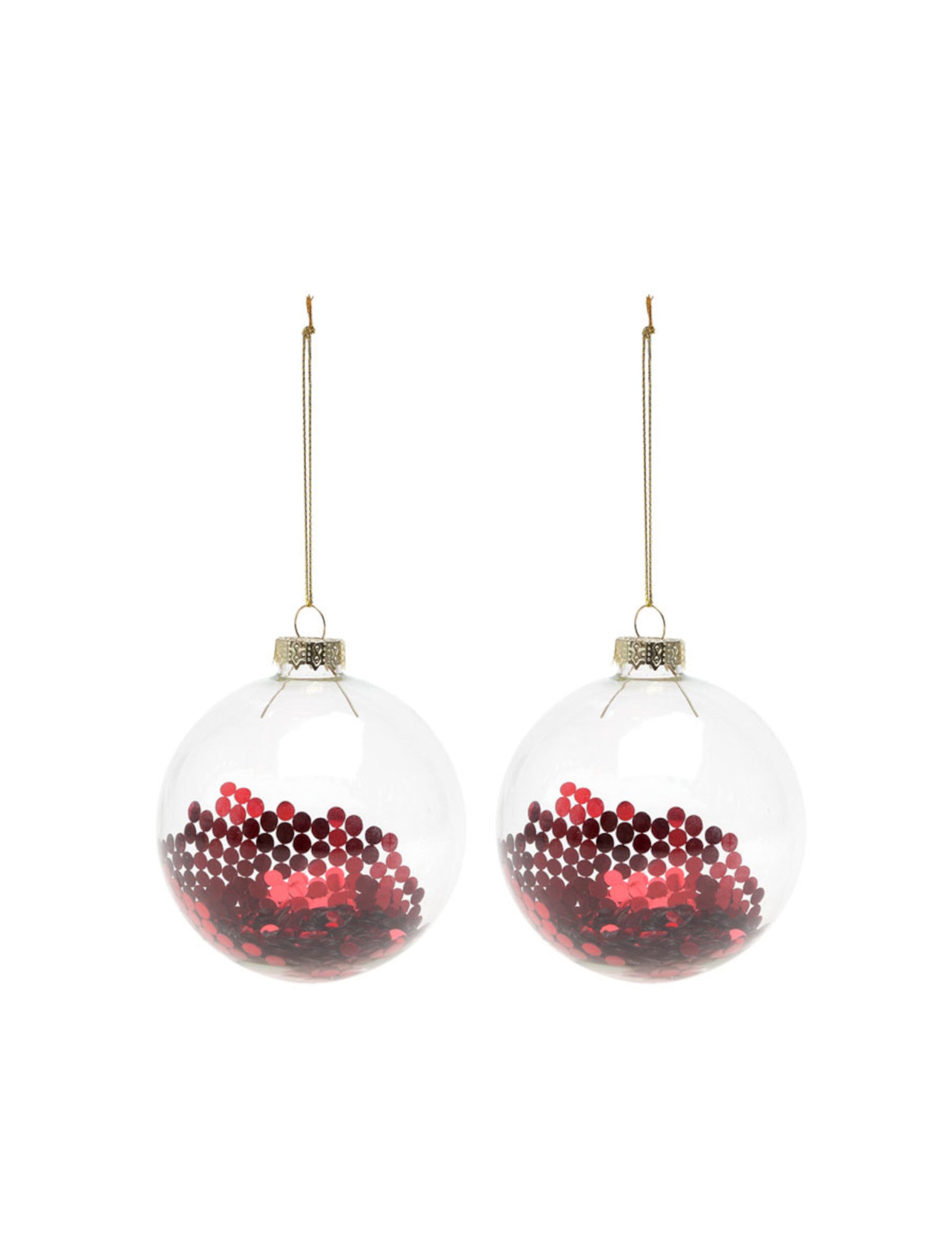 Acest set include două mingi Ornamente de Crăciun din sticlă translucidă. Fiecare piesă are un diametru de 8 cm și conține sclipici roșii frumoase pentru un efect strălucitor. bile cu sclipici va aduce strălucire și o notă de eleganță Brad de Crăciun în timpul sezonului de sărbători.