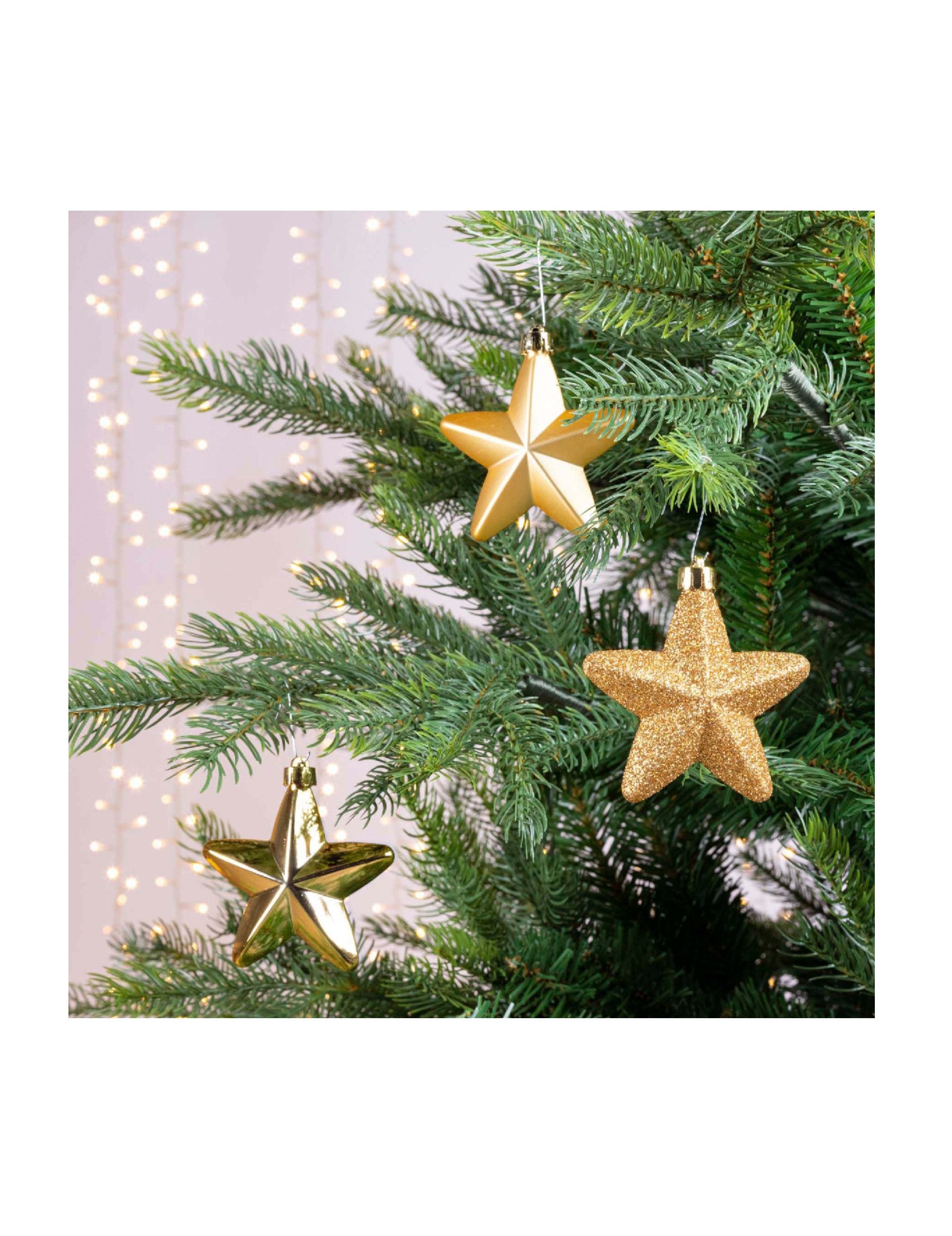 6 ornamente de brad de Crăciun cu stea aurie strălucitoare 7.5 cm