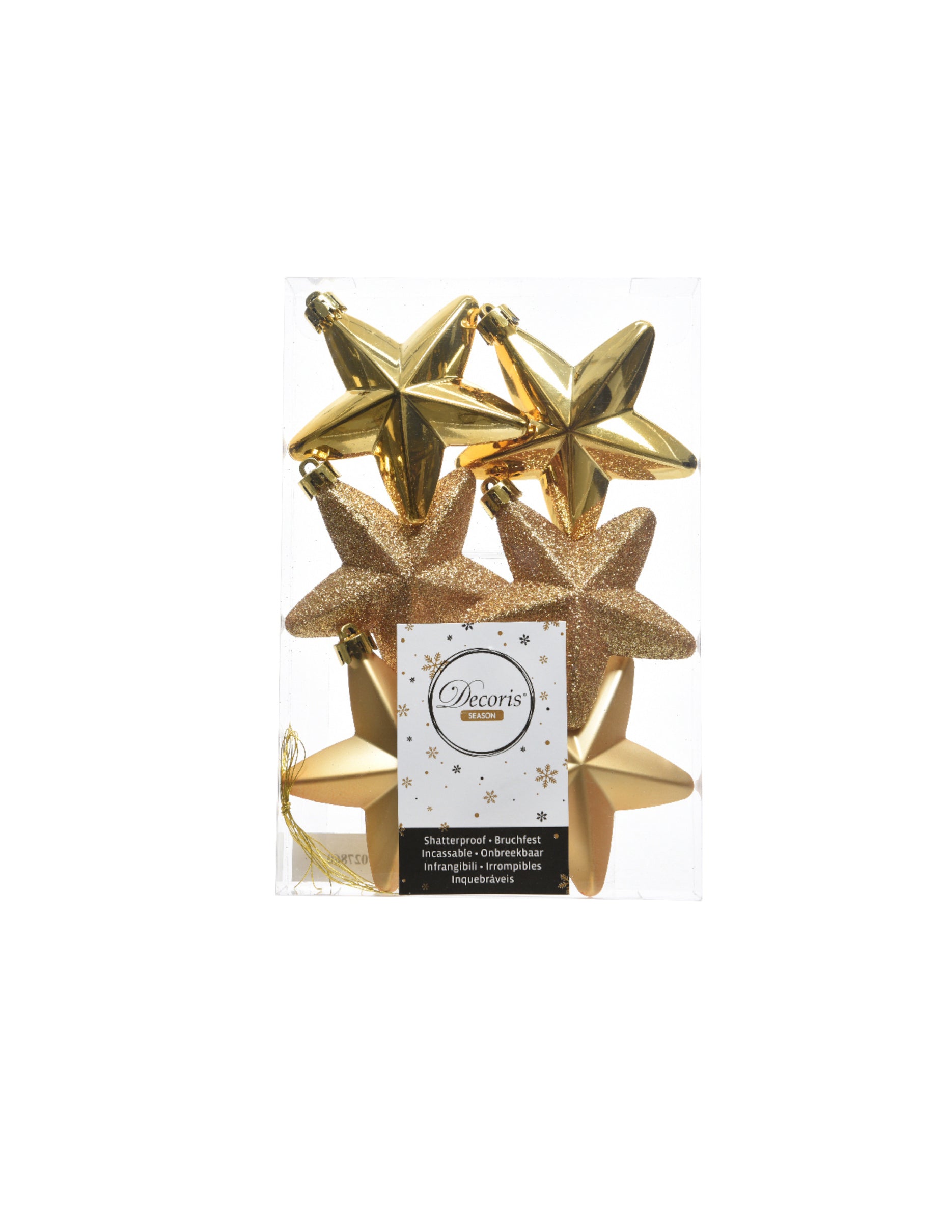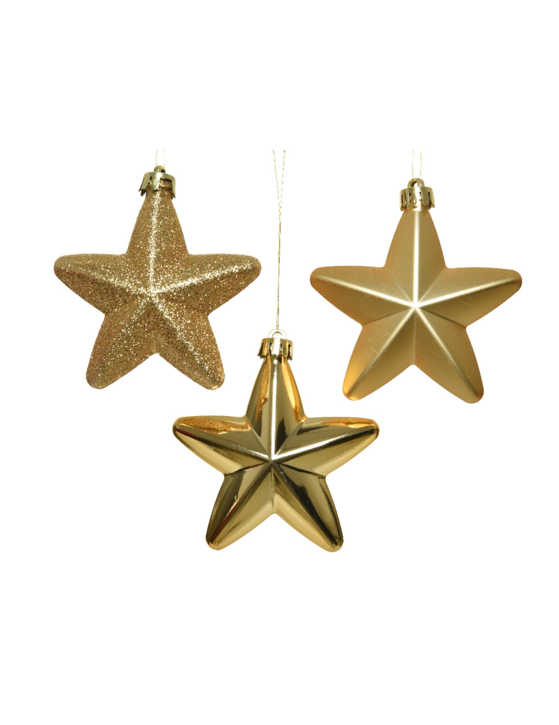 Acest set de 6 suspensii de 7,5 cm vor adăuga o notă strălucitoare decorațiunilor tale de sărbători. Acestea stele aurii Acestea oferă o varietate de finisaje, combinând efecte lucioase, mate și sclipitoare pentru un aspect elegant. Perfecte pentru a înfrumuseța bradul în timpul sărbătorilor. sărbători de CrăciunAcestea creează instantaneu o atmosferă magică și caldă.