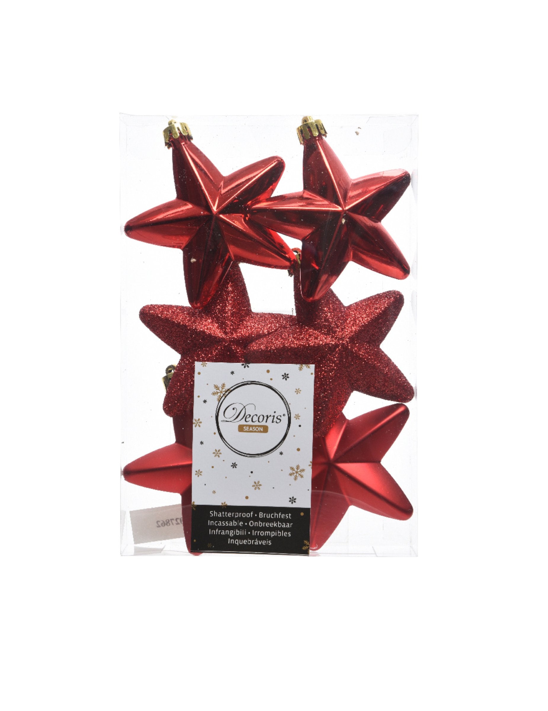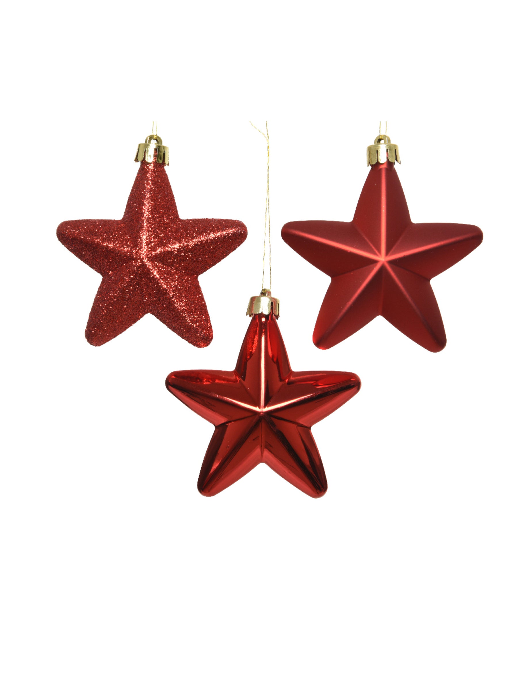 Adaugă un plus de strălucire decorului tău cu acest set de 6 piese Ornamente de brad de CrăciunCu un diametru de 7,5 cm, Aceste stele roșii sunt disponibile în finisaje sclipitoare, mate și lucioase pentru a crea o varietate de efecte. stele agățate sunt accesoriul perfect pentru a celebra magia sărbători de Crăciun cu eleganță.
