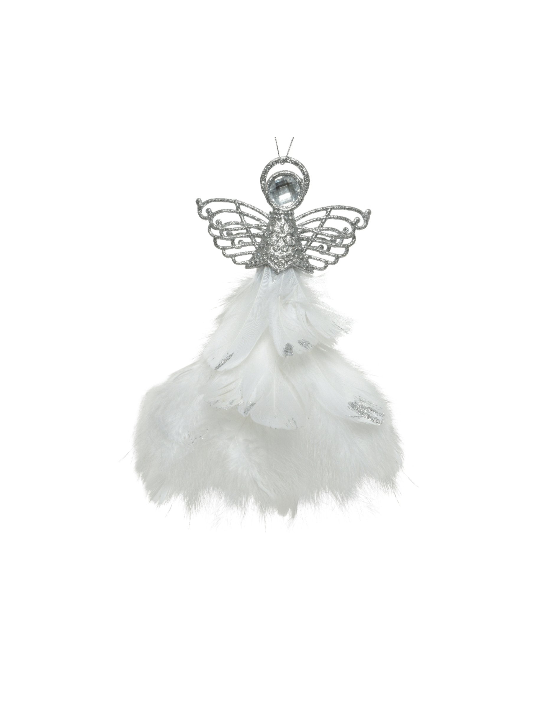 Această decorare agățată măsoară aproximativ 21 cm lungime. Reprezintă un înger mic argintiu decorat cu pene albe. Acest decor suspendat este complementul perfect pentru decorarea dvs. de Crăciun!