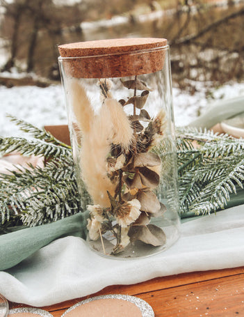 Borcan din sticlă cu pampoane și eucalipt 12,5 cm