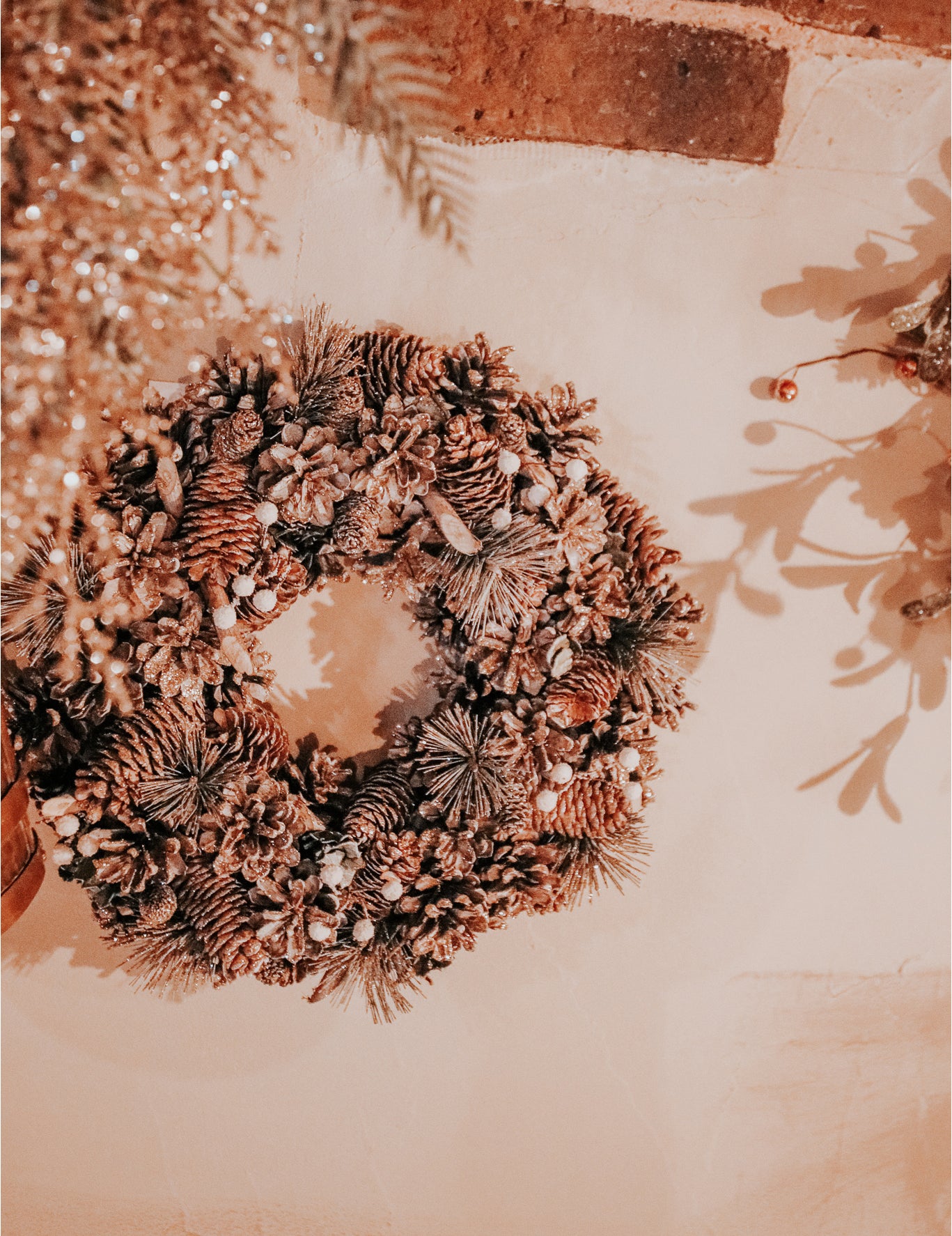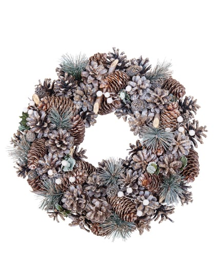 Cu un diametru de aproximativ 35 cm, acest Coroană de Crăciun va aduce o notă de autenticitate interiorului dumneavoastră. Se compune dintr-un ansamblu de decorațiuni naturale inclusiv conuri de pin de diferite forme, crengi de brad, lemn și mărgele mici albe. Este accesoriul perfect pentru a crea o atmosferă magică, naturală în timpul petrecerii tale festivități de sfârșit de an.