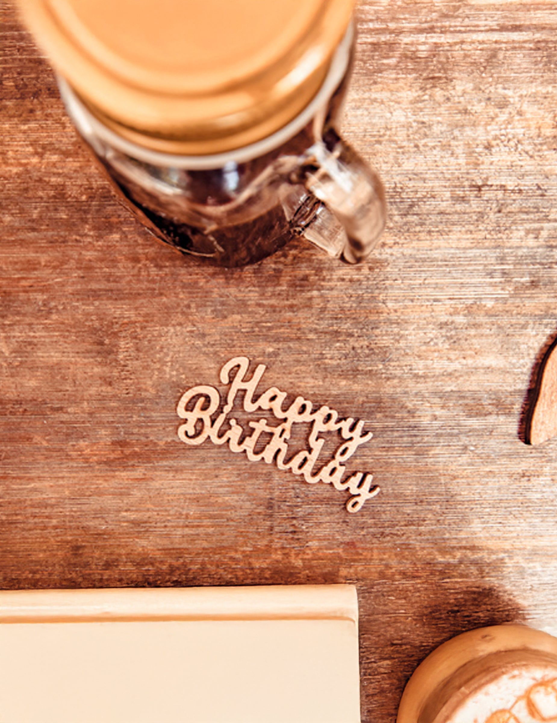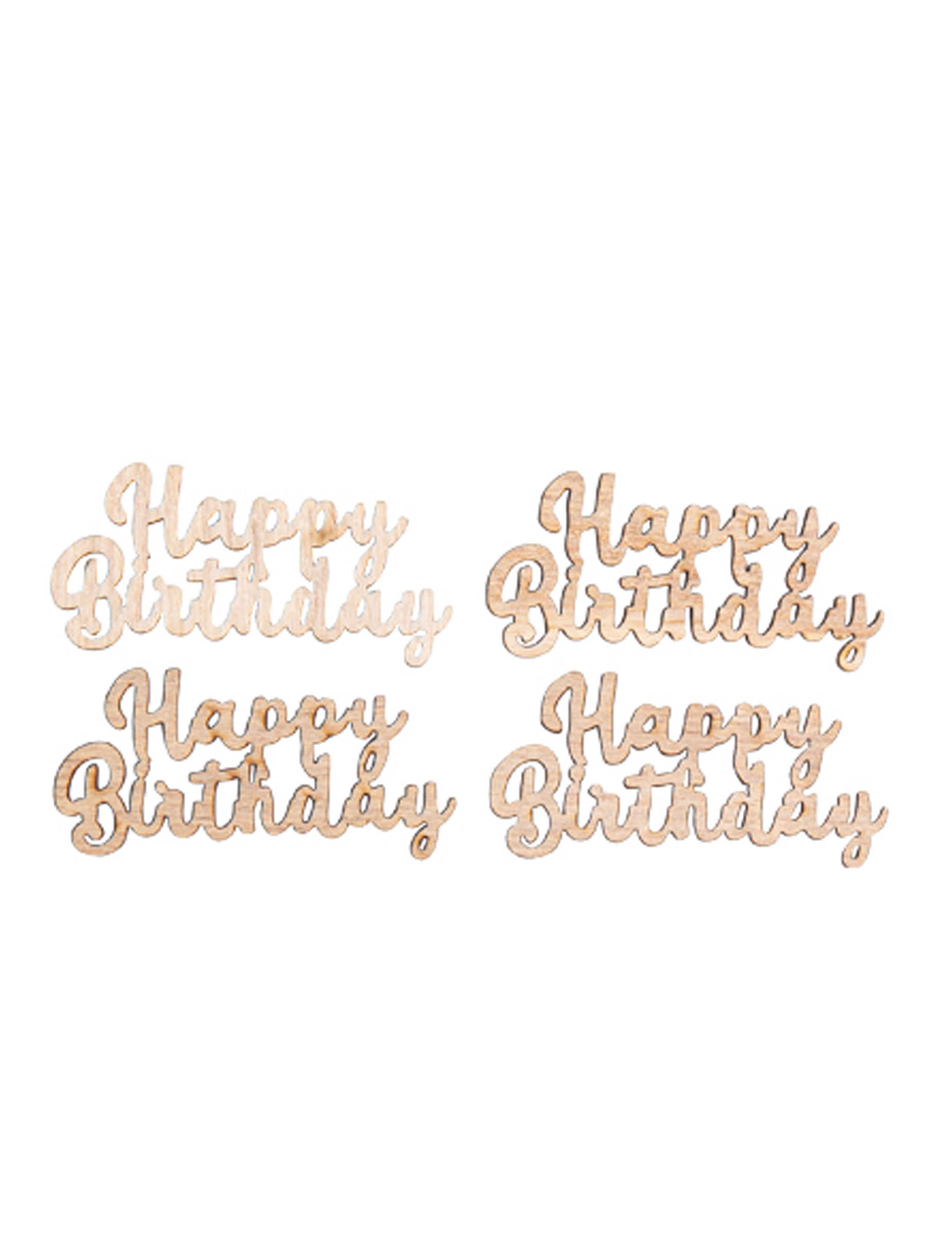 Décorez votre espace de fête avec ce sachet de 4 confettis en bois véritable. Chaque pièce mesure 6 x 3 cm et forme le texte « happy birthday ». Cet ensemble est idéal pour parsemer une table d'anniversaire ou un buffet avec élégance.