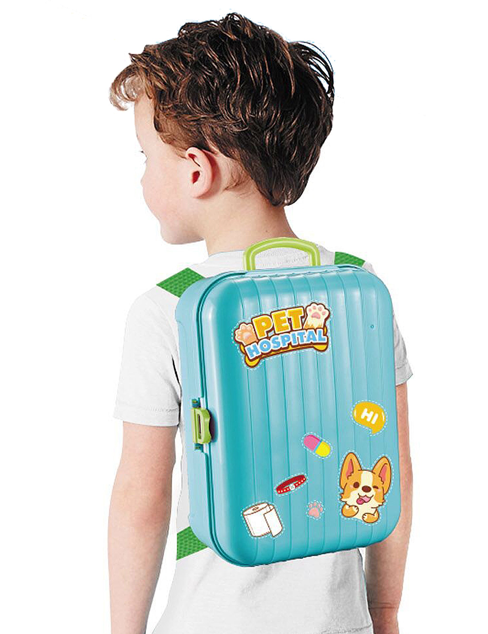 Acest caz de joc veterinar cu toate accesoriile sale conține: - 1 maletă de o dimensiune de 25,5 x 18,5 x 10 cm aproximativ - 1 placă de 20 de autocolante pentru a decora maleta - 1 câine de câine - 1 curea pentru a purta maleta în rucsac - 1 doctor Notă bloc - 1 stetoscop - 1 pereche de foarfece - 2 termometre - 1 pereche de ochelari - 1 seringă - 1 malot - 1 oglindă falsă - 1 perie/clește - 1 tensiometru - 1 otoscop - 1 valiză din carton pentru a fi pliat și montați -vă - 1 tavă (aspectul paletei) - 1 grilă (aspectul paletei) - 1 șină (pentru a suspenda accesoriile) Acest kit complet va fi perfect pentru completarea unui costum de master animal!
